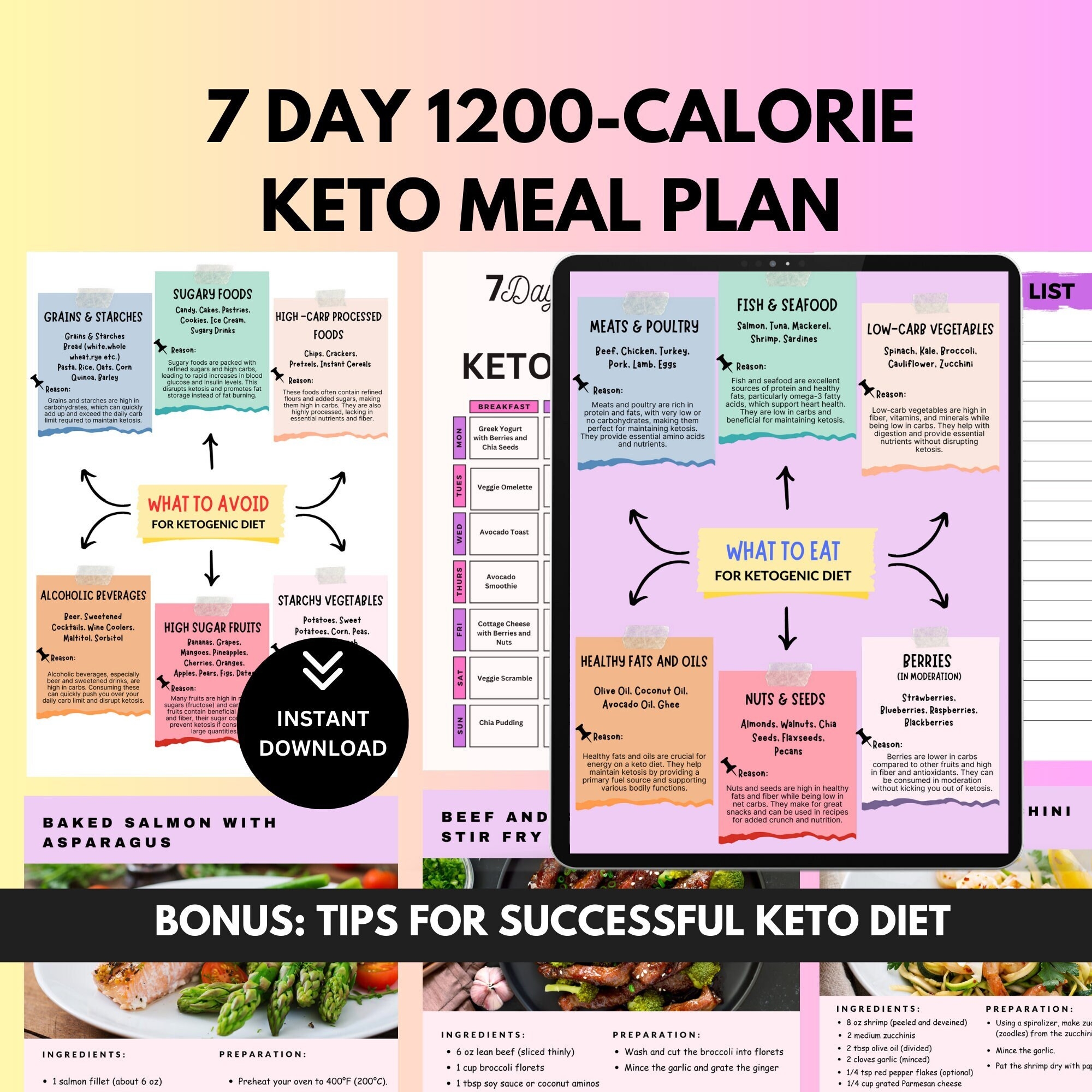 7 Day 1200 Calorie Keto Meal Plan Keto Diet Meal Plan PDF Low Carb List Keto Food List Weight Loss Keto Healthy Recipes Ketogenic Etsy