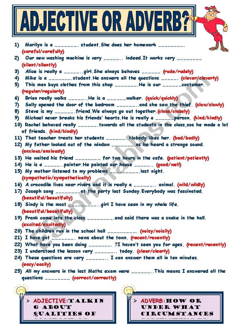 ADJECTIVE OR ADVERB ESL Worksheet By Memthefirst
