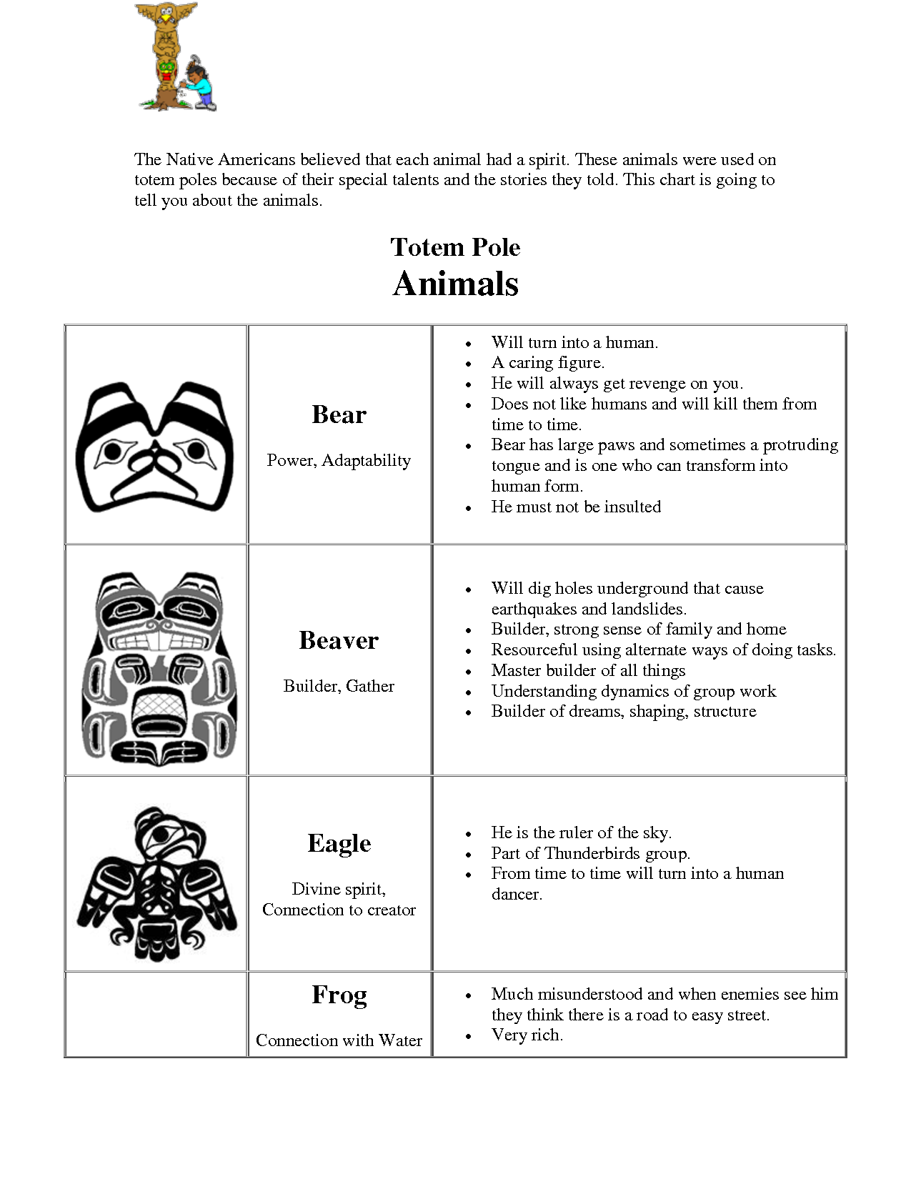 Animal Totem Pole Images Printable