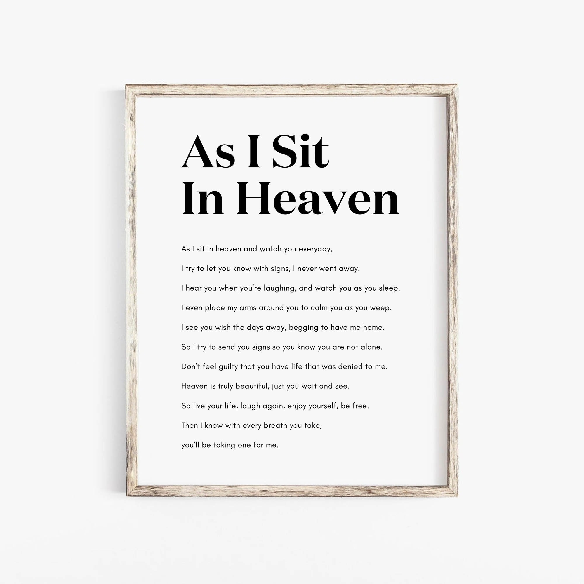 As I Sit In Heaven Printable Poem In Loving Memory Wall Art Words Of Sympathy Memorial Quotes Art Gift For Loss Digital Download Etsy