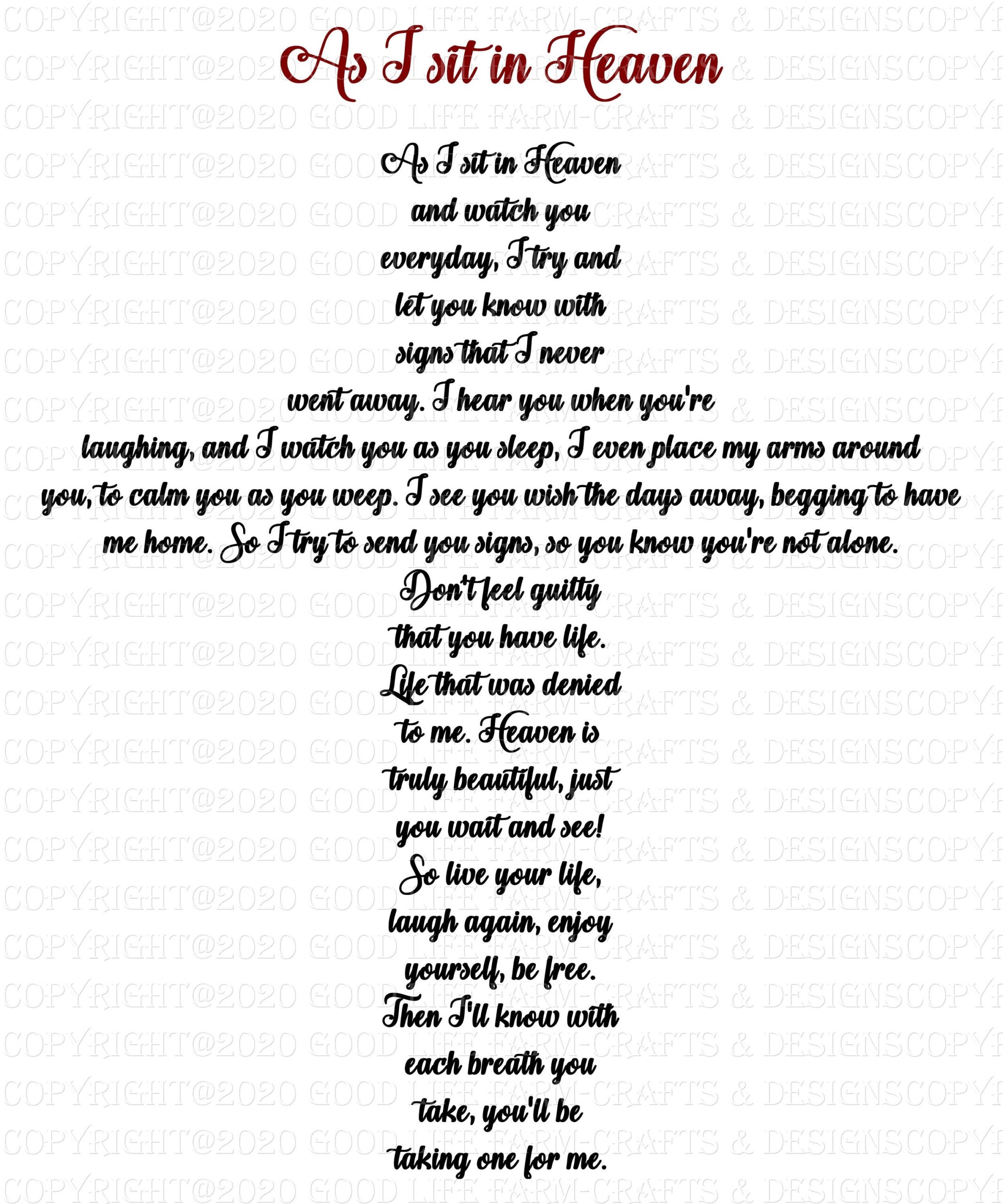 As I Sit In Heaven Printable Poem Digital Download Grief Quote A Letter From Heaven Bereavement Messages Etsy