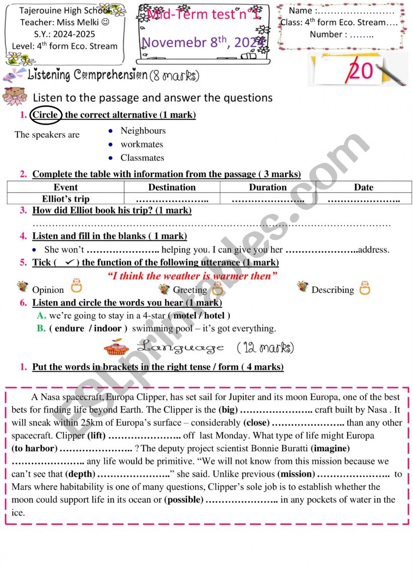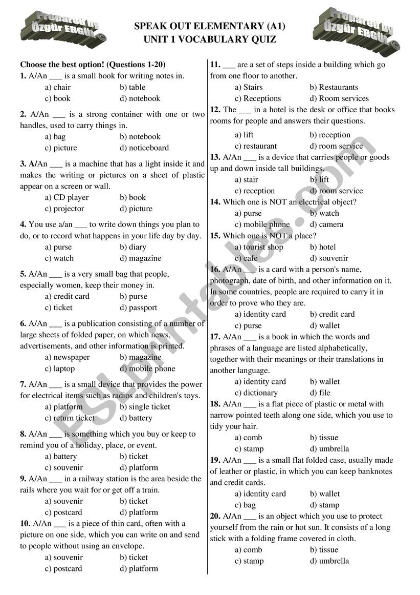 Speakout Elementary Unit 1 Vocabulary Quiz ESL Worksheet By Bennnozgurumm