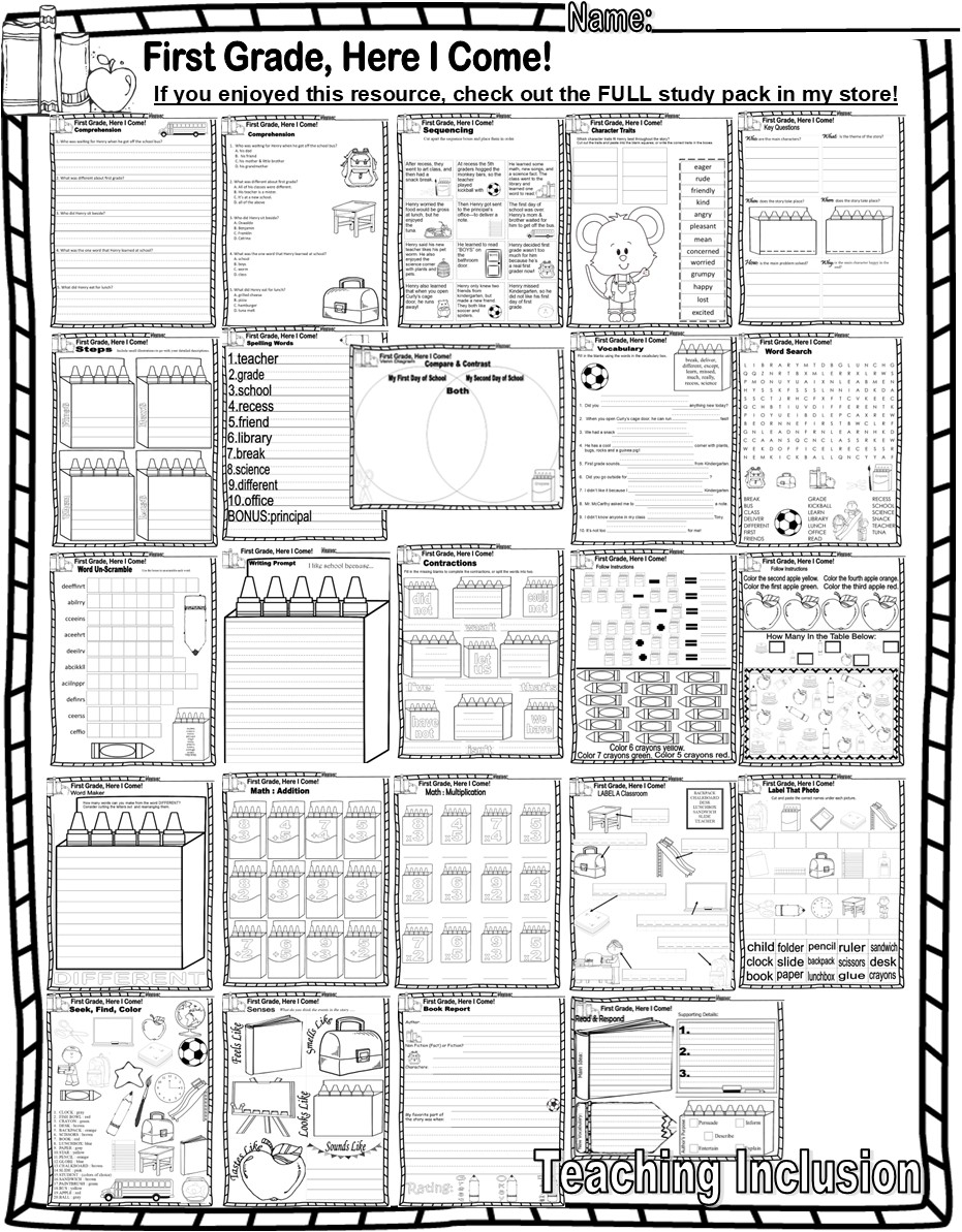 First Grade Here I Come Reading Quiz Test Story Scene Sequencing Back To School Worksheets Made By Teachers