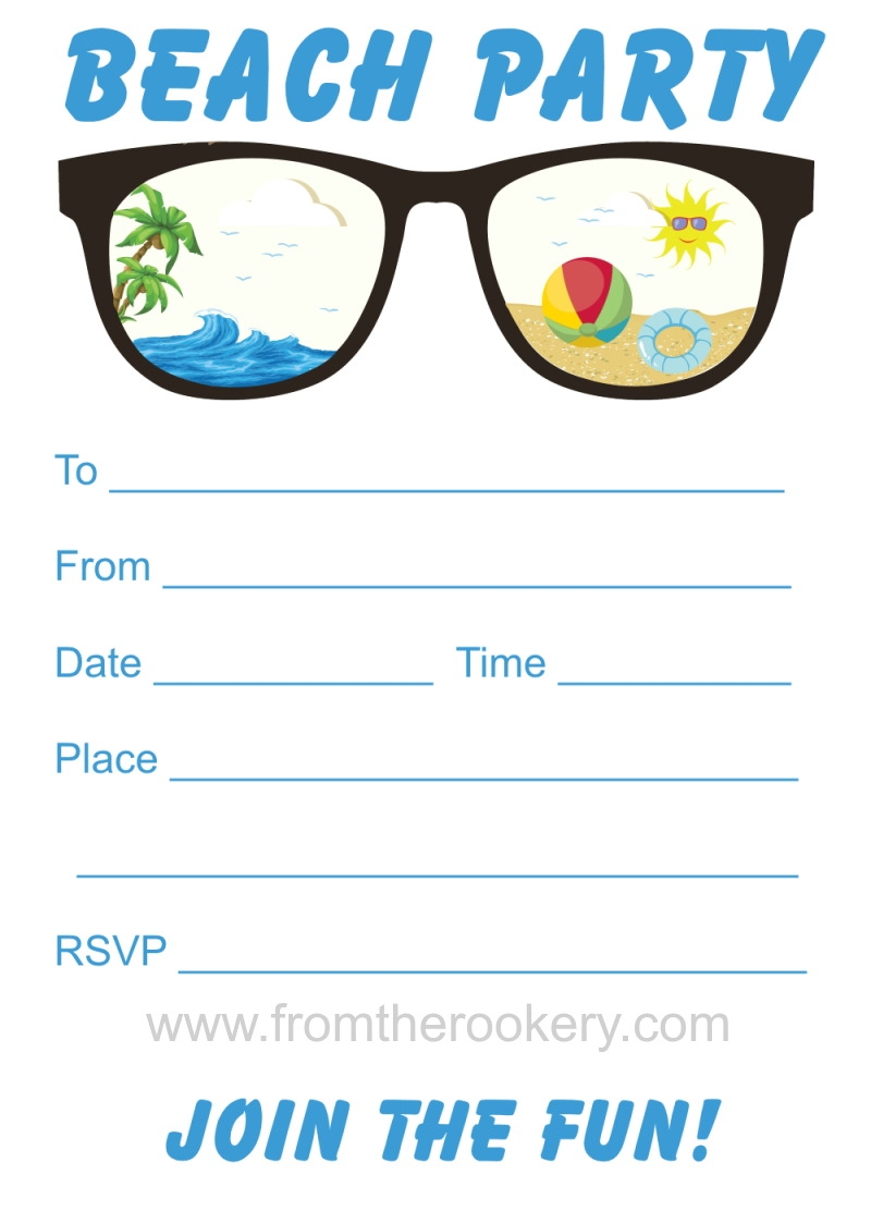 Customizable Beach Party Invitations Free Printable