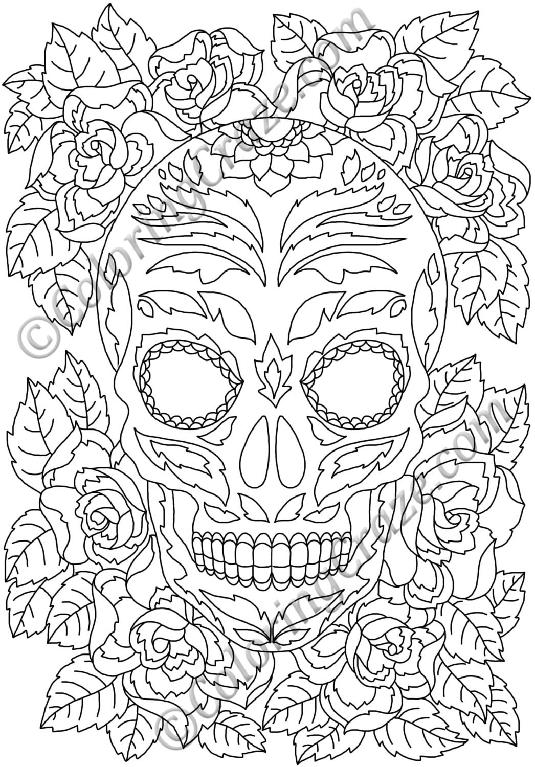 Day Of The Dead Coloring Page 15 DIGITAL printable PDF Illustration Dia De Los Muertos Art Adult Coloring Books Flowery Sugar Skull Etsy