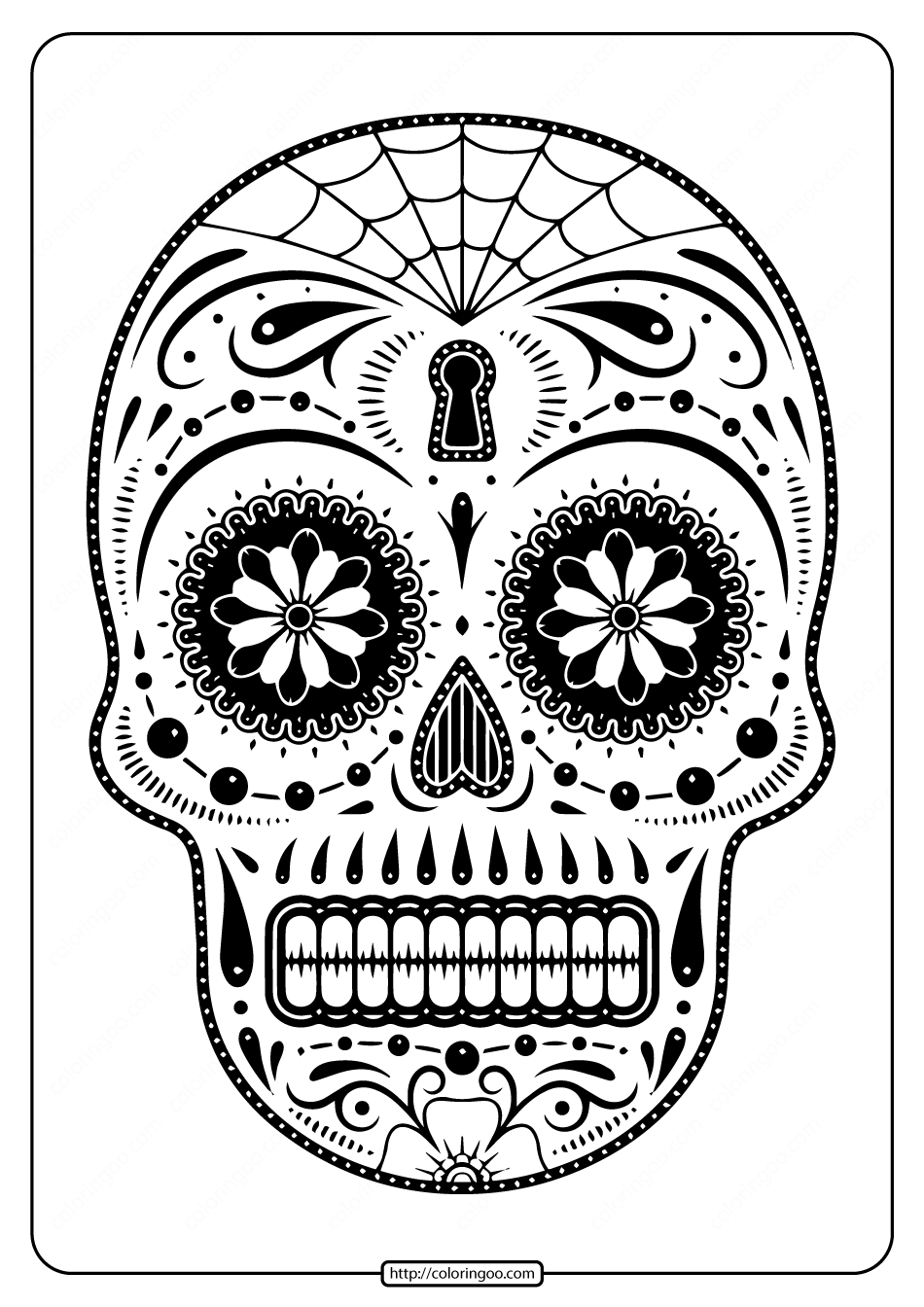 Printable Day Of The Dead Skull Black And White Coloring Sheet Outline Sketch Drawing Vector Skull Drawing Wing Drawing Ring Drawing PNG And Vector With Transparent Background For Free Download
