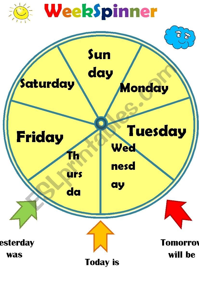 Days Of The Week Wheel ESL Worksheet By Mele