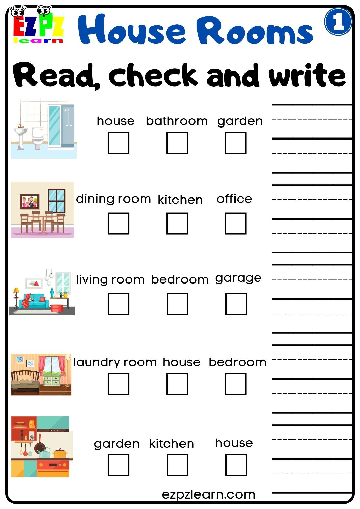 House Rooms Vocabulary Read Check And Write Activity For Homeschool K5 And ESL Teachers Free PDF Ezpzlearn
