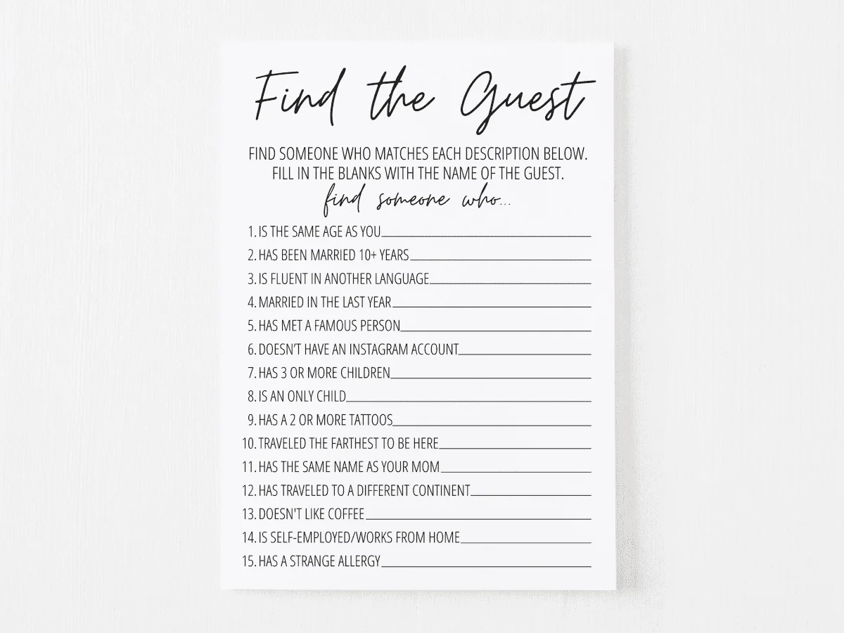 Find The Guest Bridal Shower Game Free Printable Modern MOH