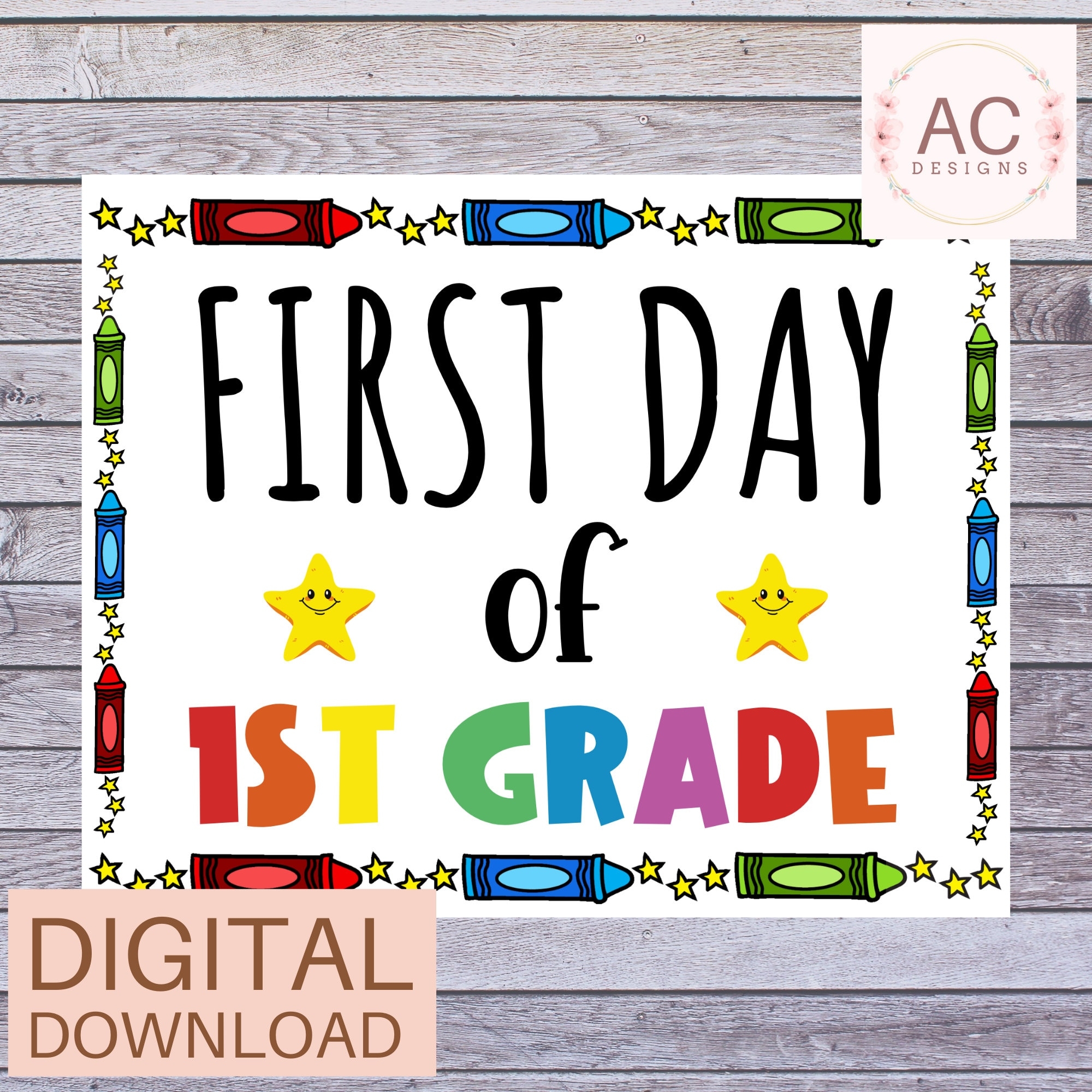 First Day Of 1st Grade Sign With Crayon Border First Day Of School Grade 1 Printable Instant Download Back To School Sign Photo Prop Etsy
