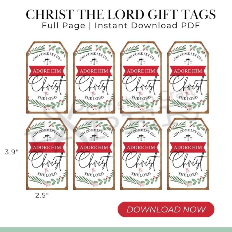 Christmas Gift Tags Oh Come Let Us Adore Him Digital Download Christian Craft Paper