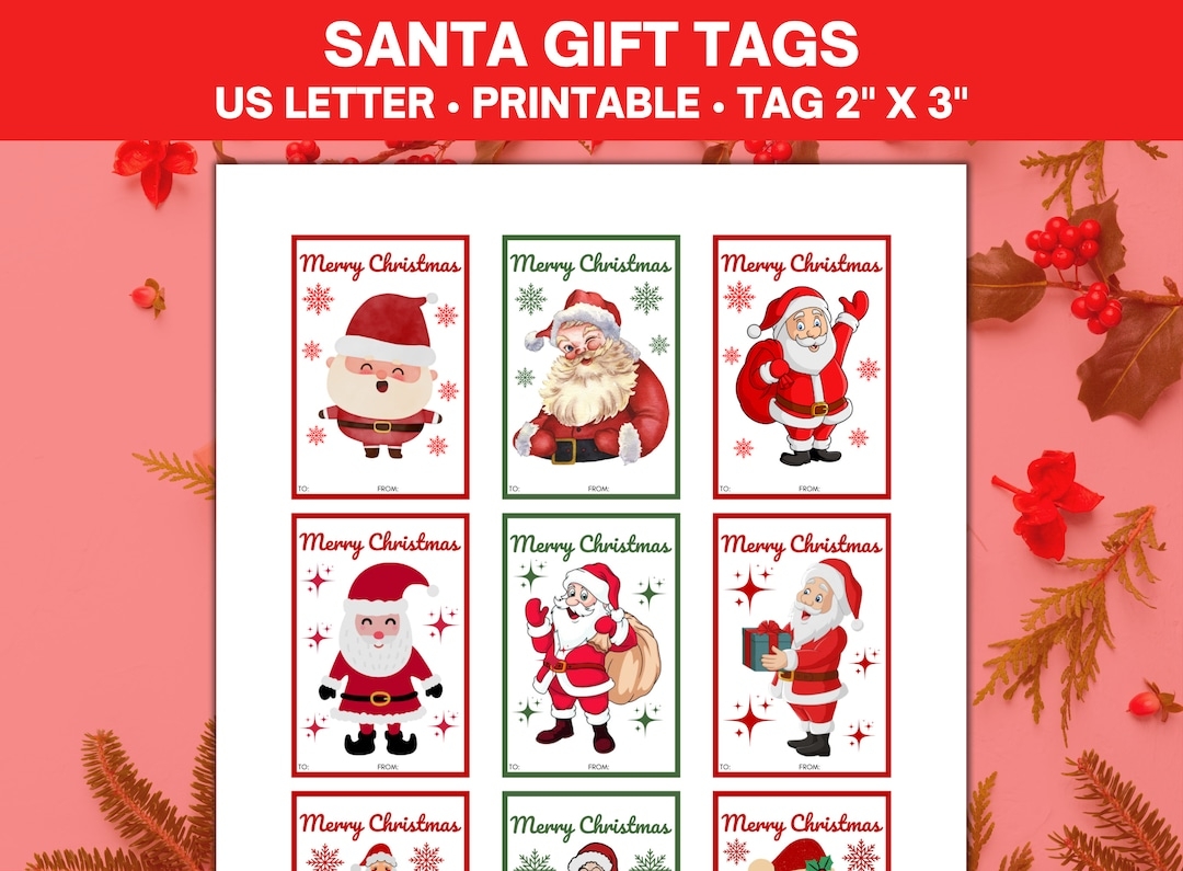 Santa Gift Tags Printable Christmas Gift Tags Merry Christmas Tags Gift Tag Pdf Christmas Etsy