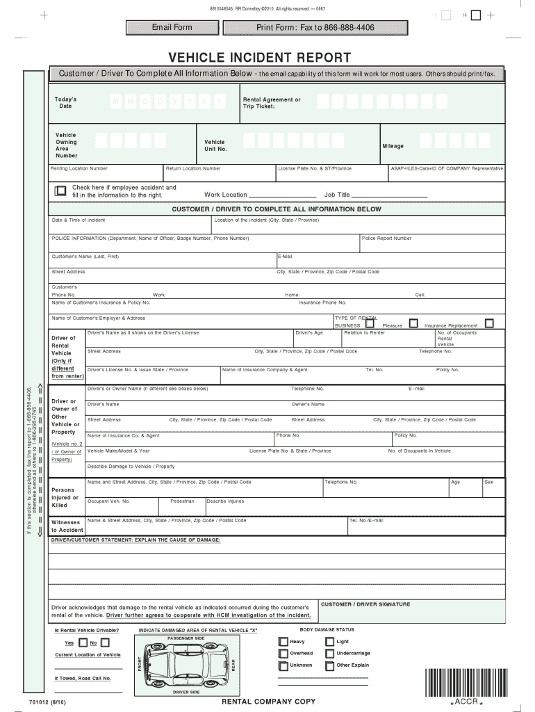 Free Employee Vehicle Accident Report Form Printable