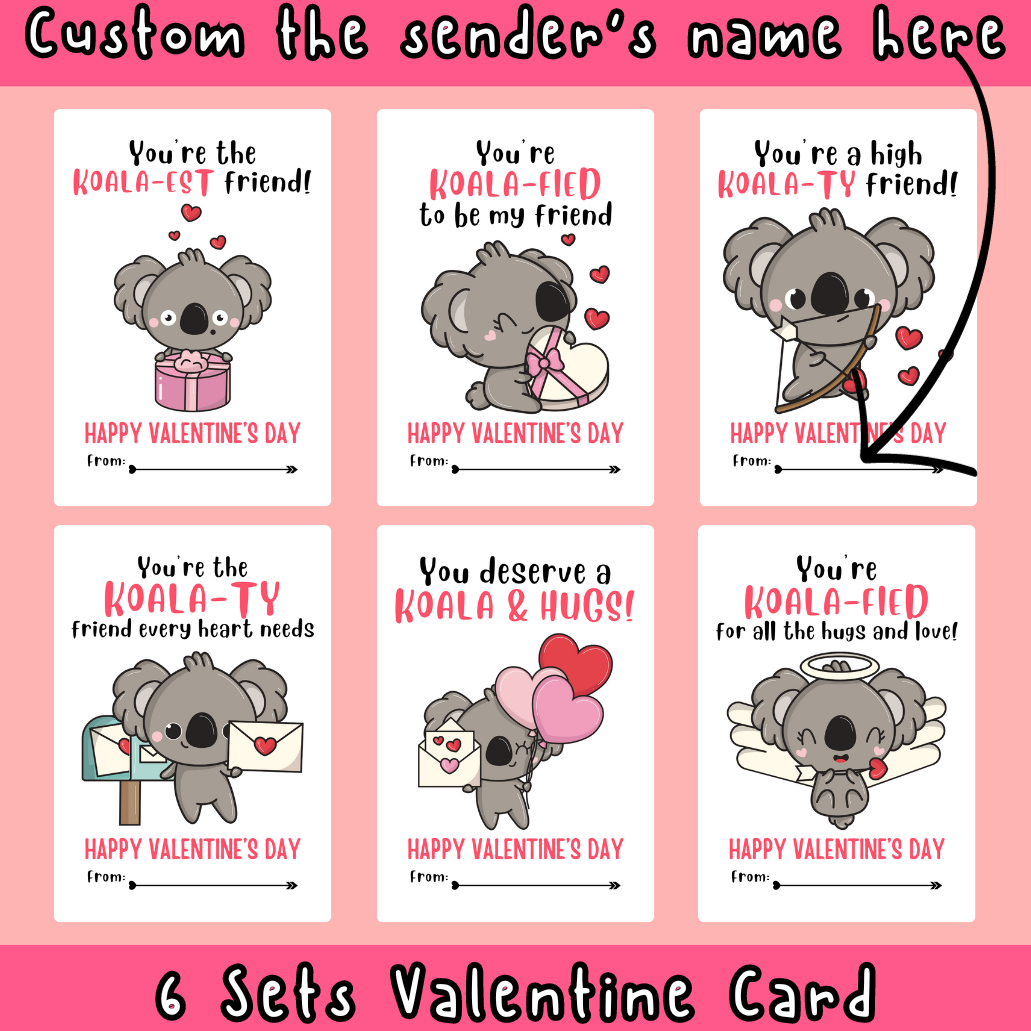 Valentine s Day Card Koala Theme Printable Digital Card Made By Teachers