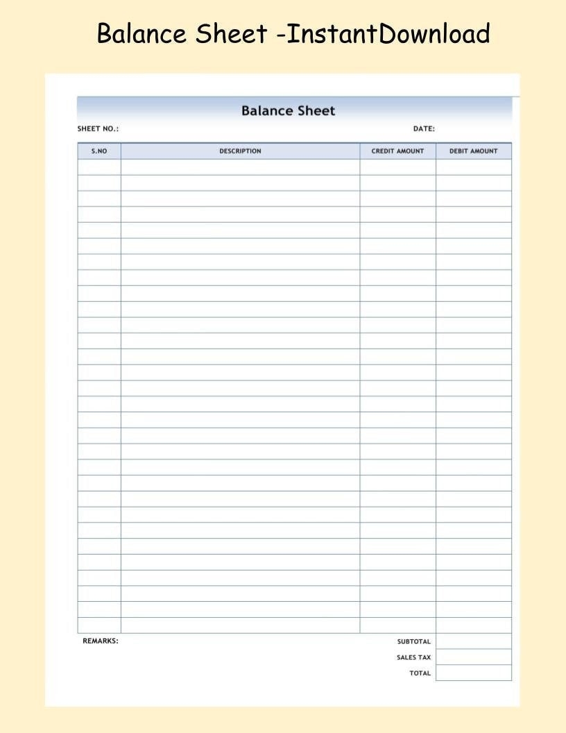 Printable Balance Sheet ledger Sheet Small Business Accounting Form PDF Digital Download trial Balance printable bookkeeping entrepreneur Etsy