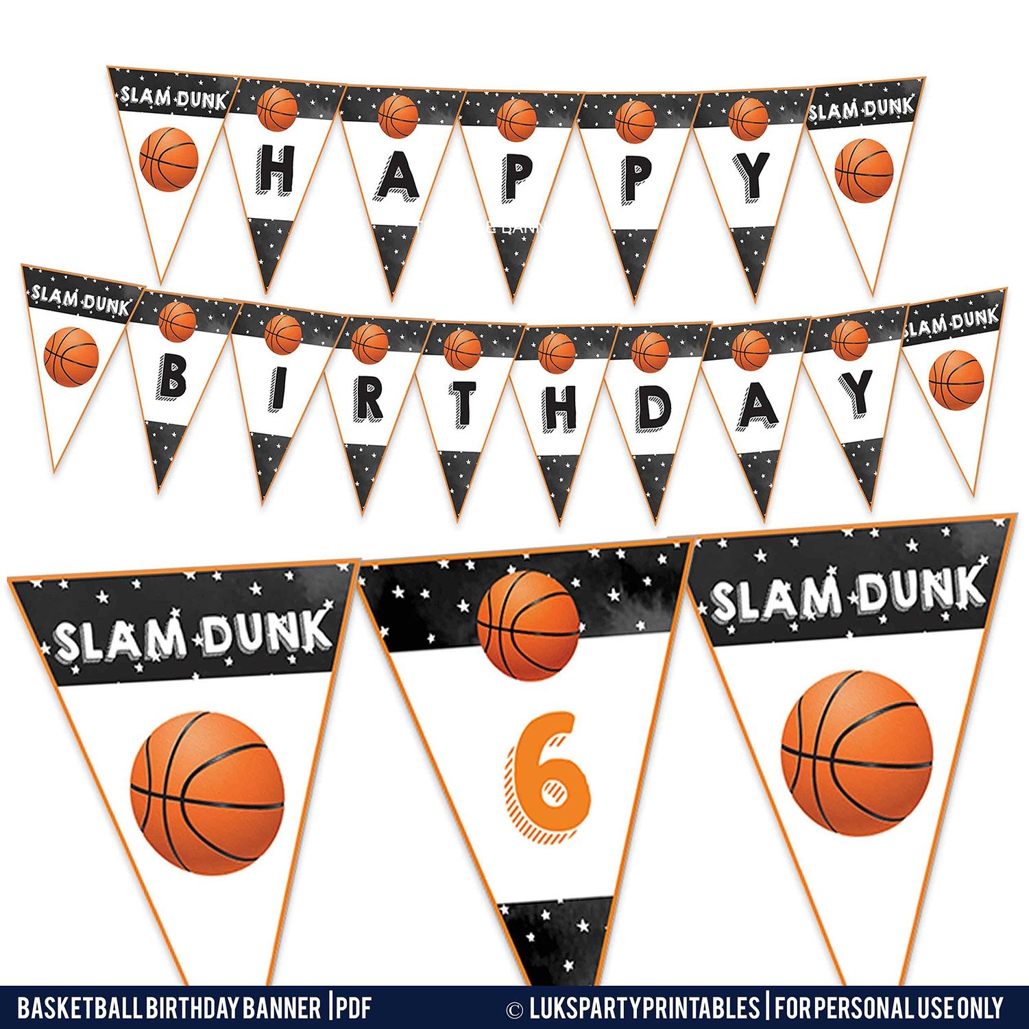 Basketball Party Banner Template Birthday Banner Editable Bunting