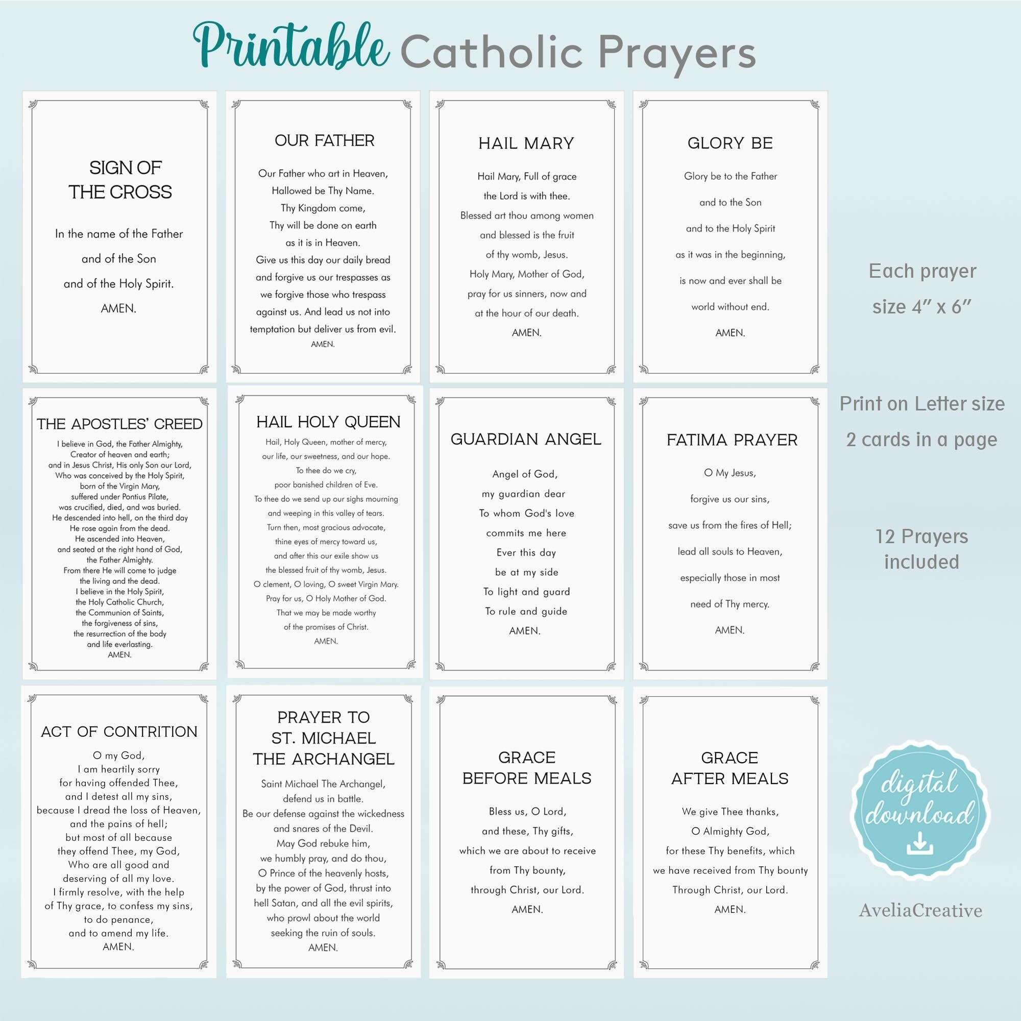 Popular Catholic Prayers Traditional Prayer Cards Printable Common Catholic Prayers Apostles Creed Hail Holy Queen Digital Download Etsy UK