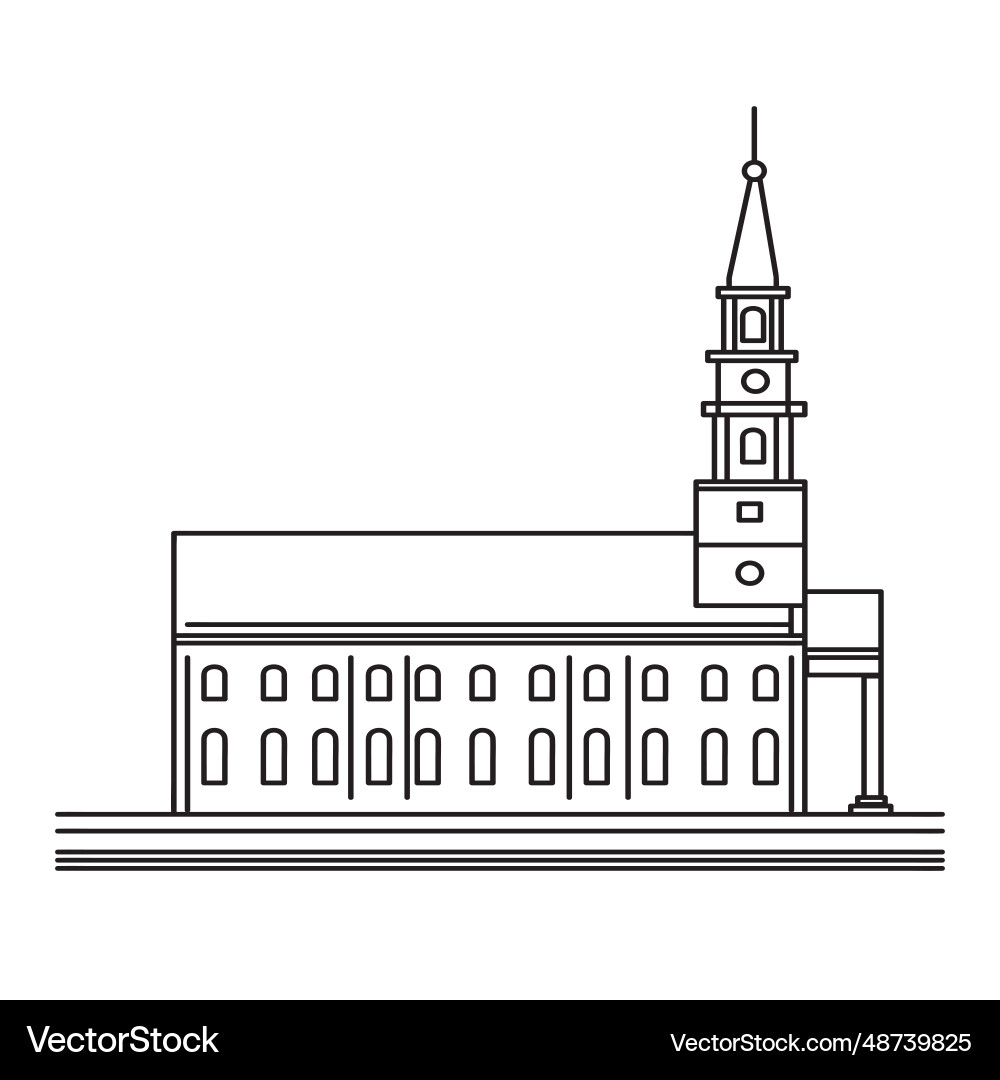 Church With Steeple Side View Mono Line Art Vector Image