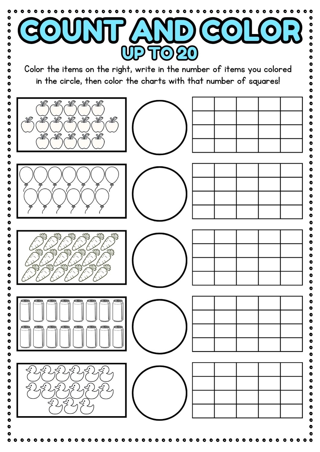 These worksheets are perfect for preschoolers or kindergarteners who are just starting out with counting. They feature cute and colorful graphics that will capture your child’s attention and keep them engaged as they learn to count from 1 to 20.