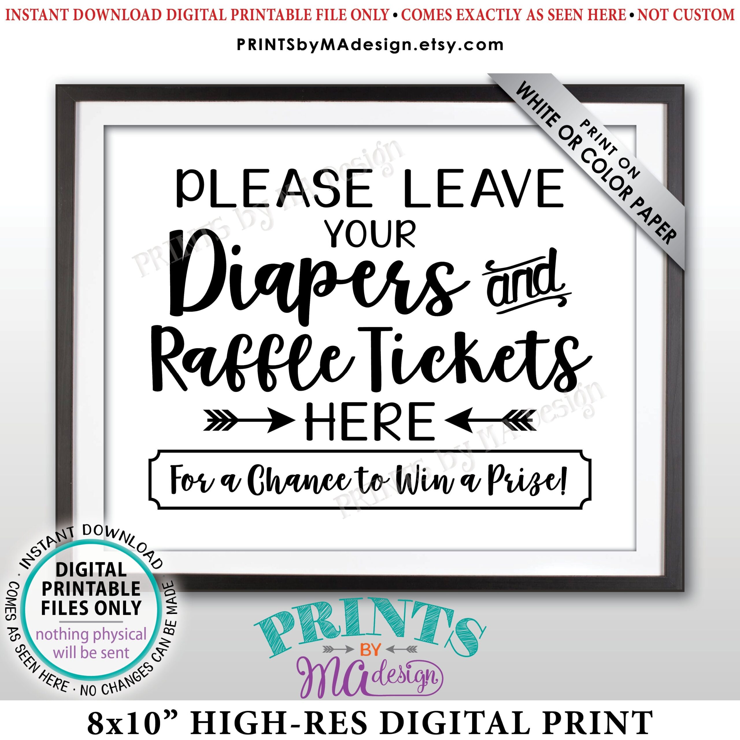 Diaper Raffle Ticket Sign Leave Your Diapers And Raffle Tickets Here Baby Shower Raffle Sign Shower Activity PRINTABLE 8×10 Sign ID