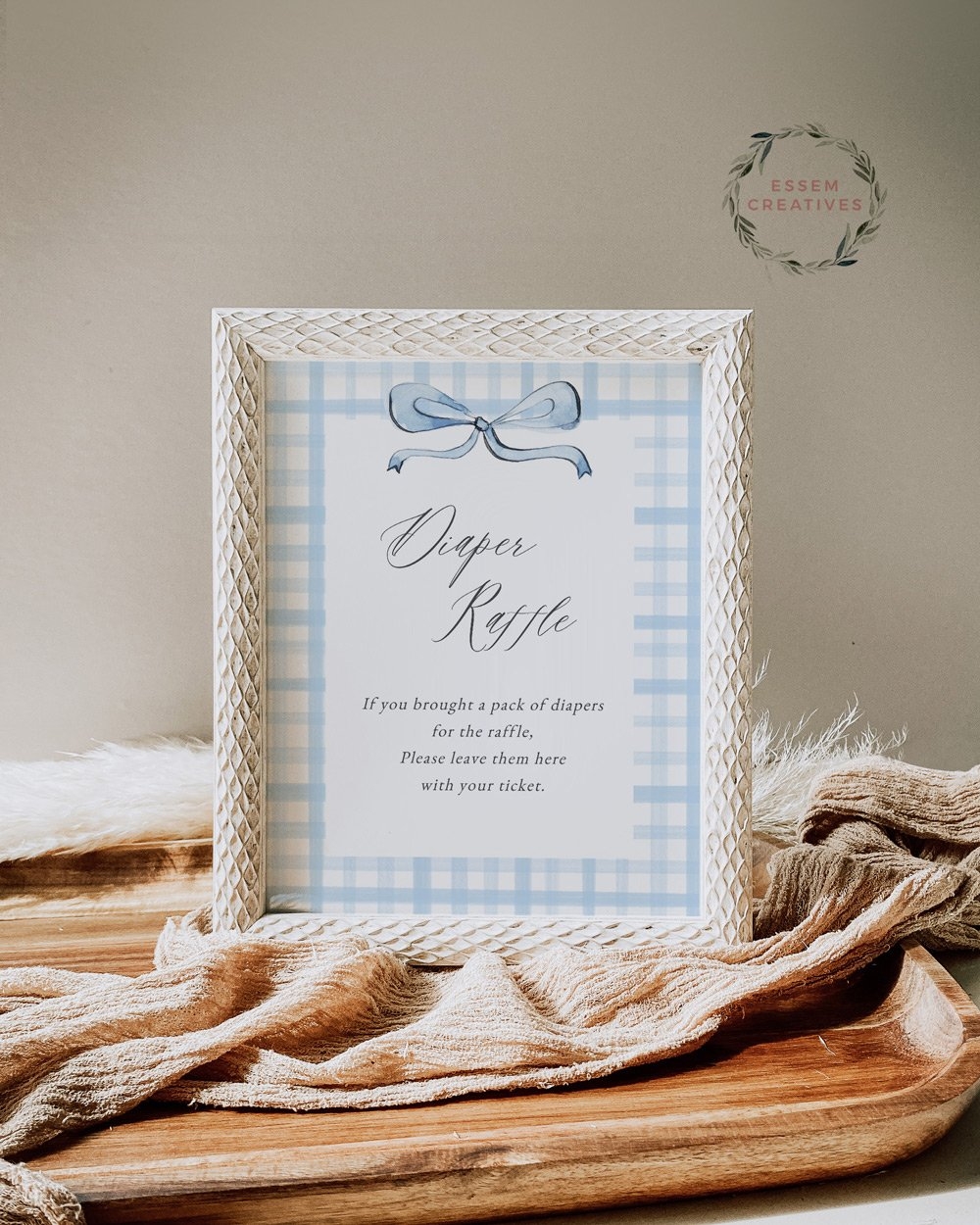 Once you have your sign printed and displayed, be sure to have a cute basket or container set up for guests to drop off their diaper donations. Make sure to have plenty of raffle tickets on hand for guests to fill out their names and contact information.