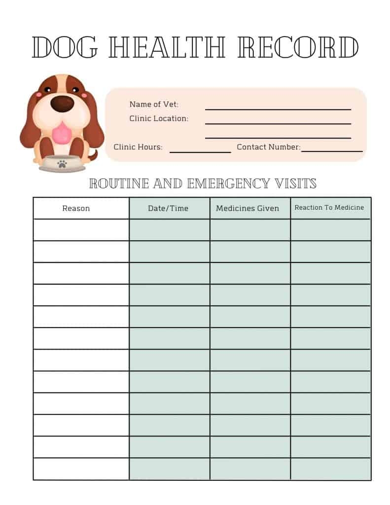 Remember to update your dog’s health record regularly with any new medications, treatments, or changes in their health status. This will ensure that you always have the most up-to-date information on hand, making vet visits smoother and more efficient.