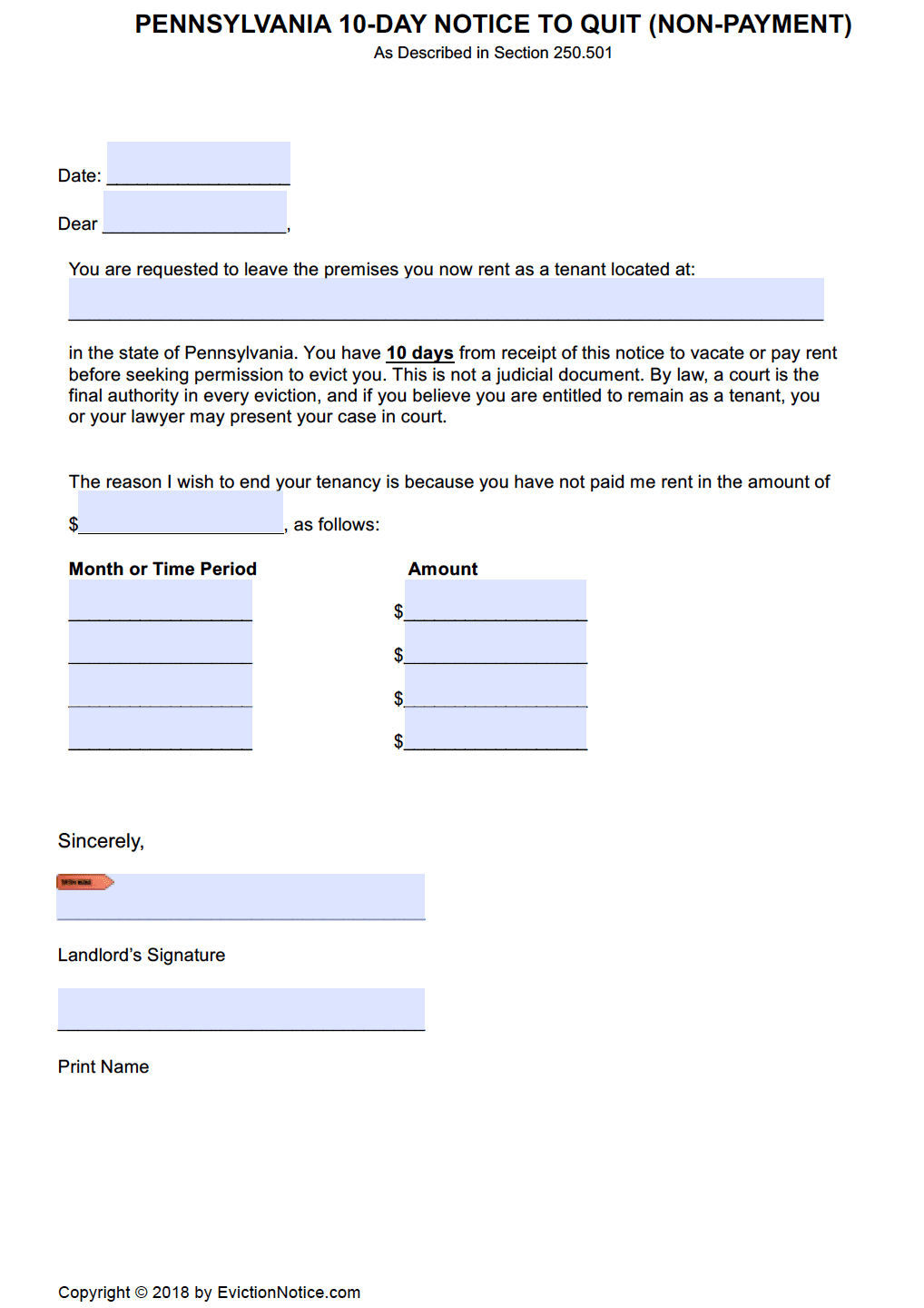 Pennsylvania Eviction Notice Form Free Template CocoSign