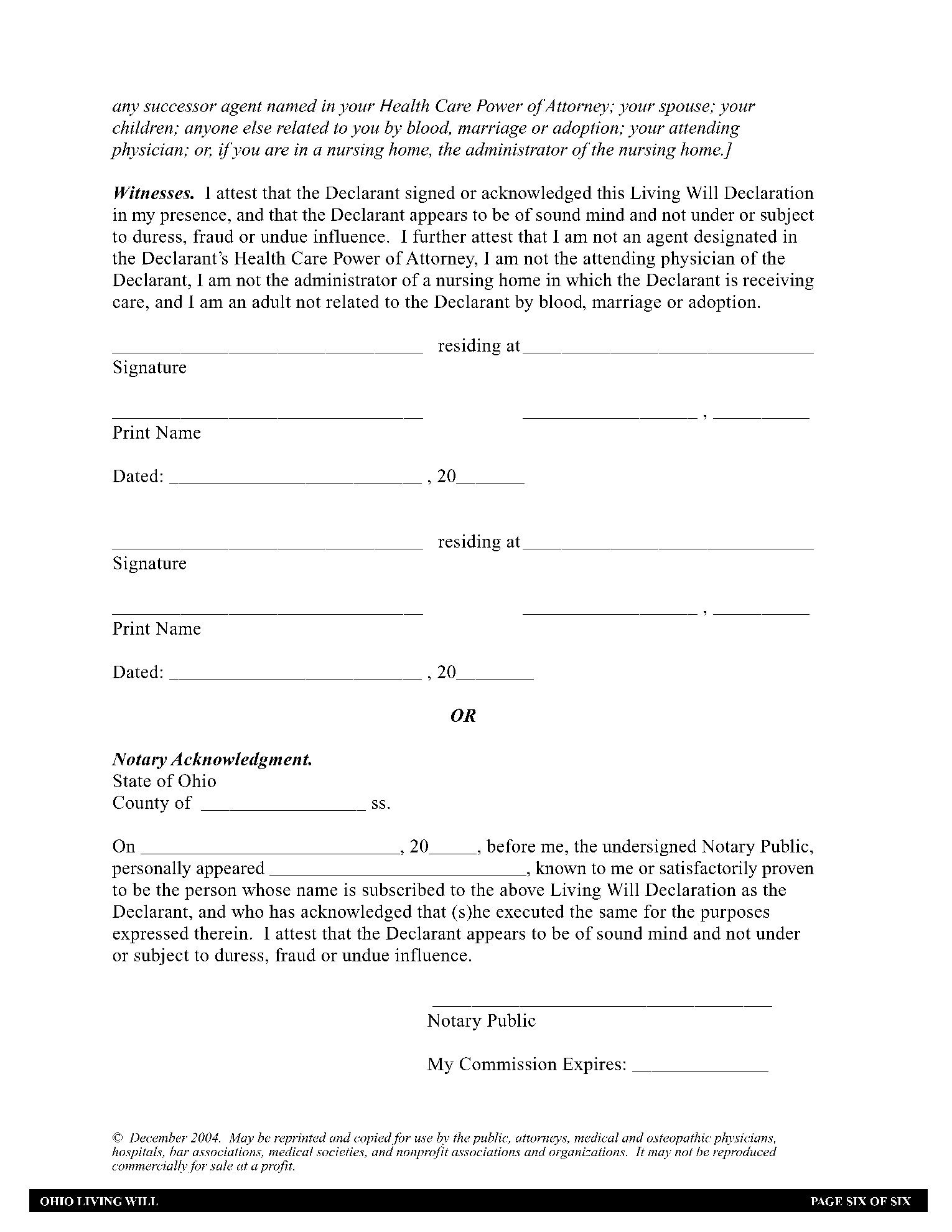 Free Ohio Living Will Form PDF