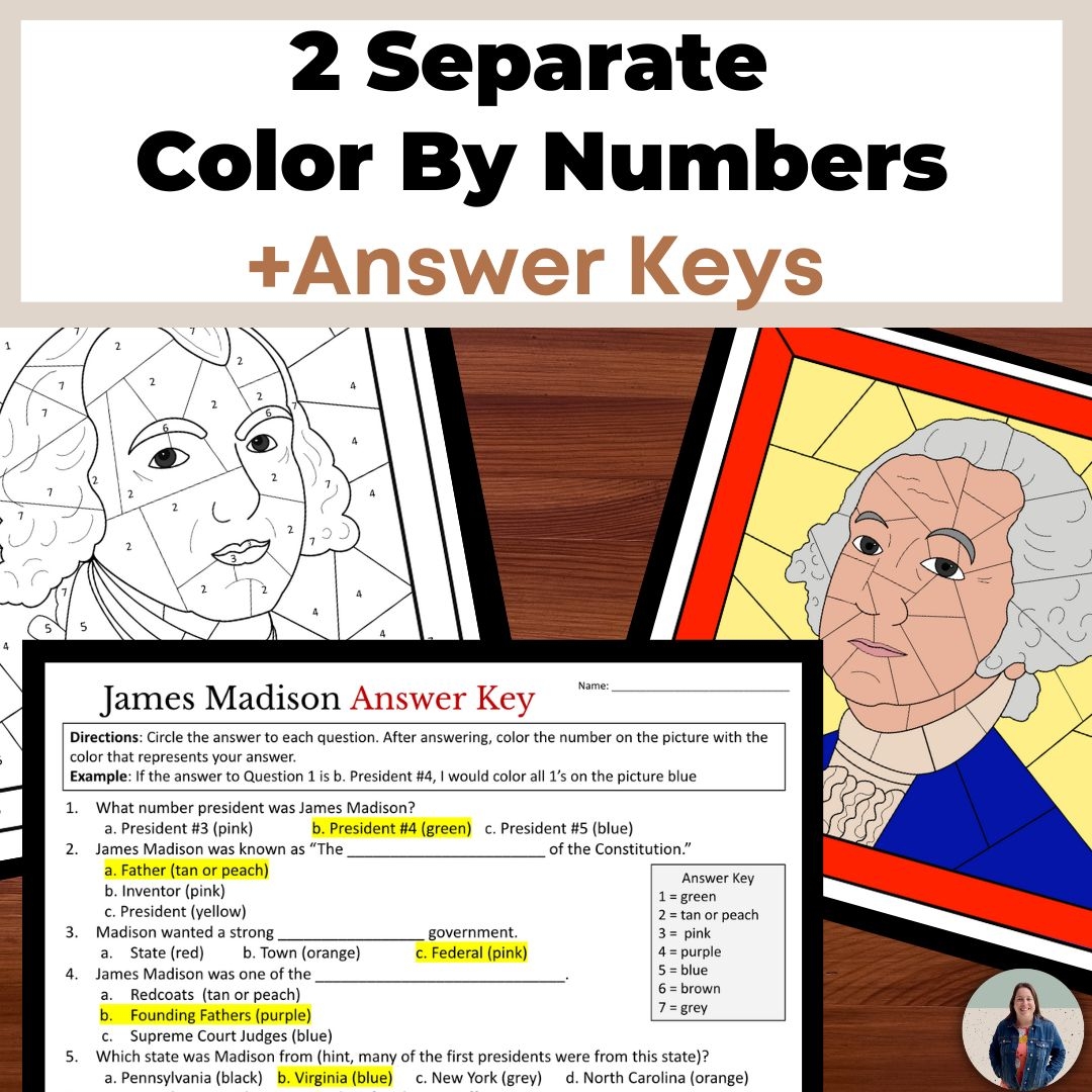 George Washington And James Madison Color By Number History Activities Classful