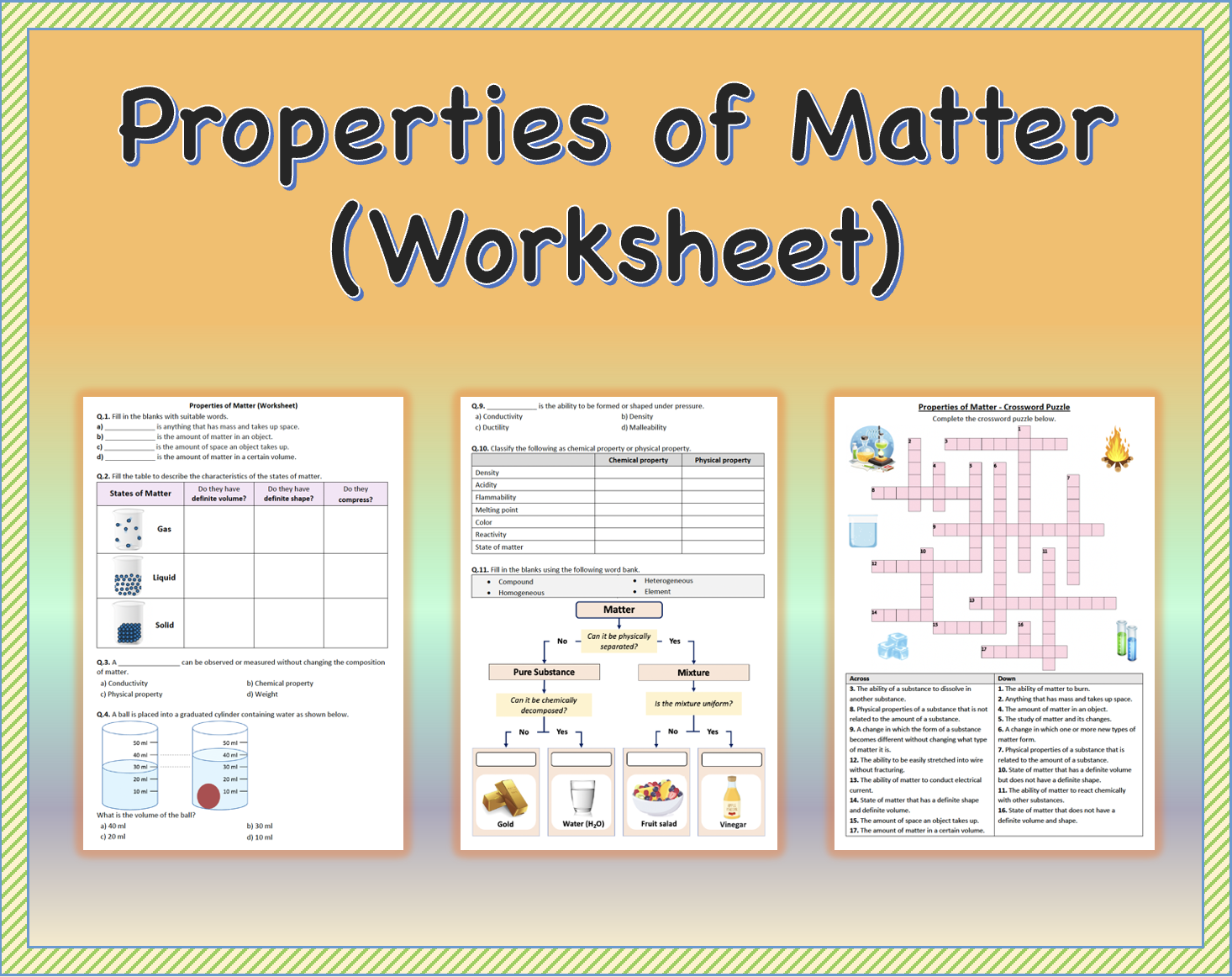 These worksheets cover various topics related to matter, such as solids, liquids, gases, and more. They are designed to help children understand the different properties of matter in a hands-on and interactive way. So, get ready to dive into the world of science with these free printable worksheets!