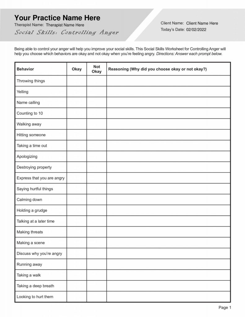 Free Printable Social Skills Worksheets For Adults