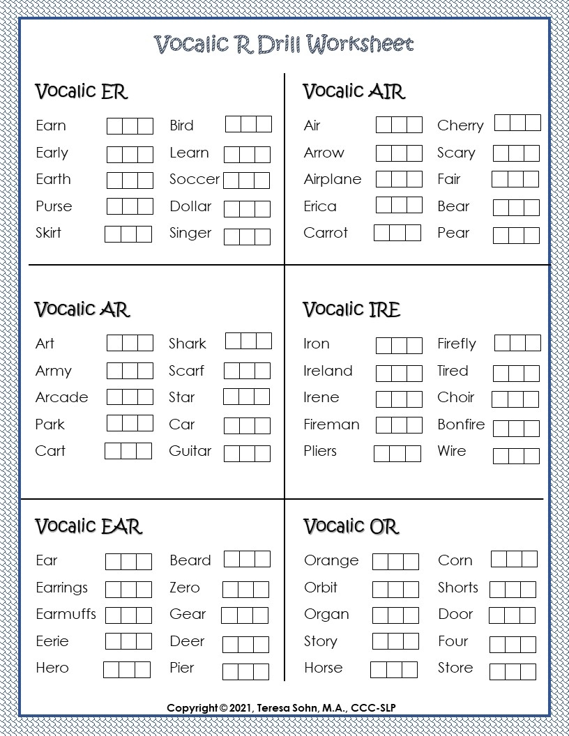 VOCALIC R SPEECH THERAPY ARTICULATION THERAPY R ARTICULATION Worksheets Library