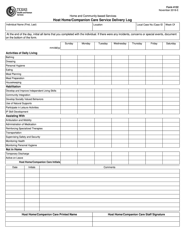 Fill And Sign The Hostcompanion Service Delivery Log Form 4122 Fill Online Printable Fillable Blank Fieldtripconsentformcom