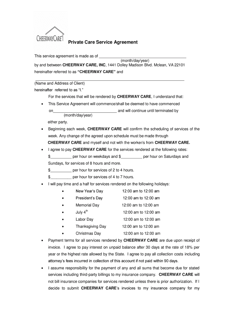 Homecare Agreement Fill Online Printable Fillable Blank PdfFiller