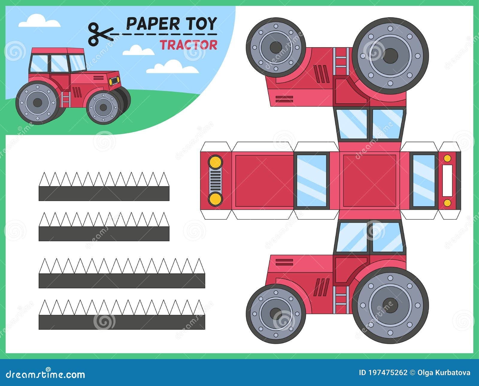 Tractor Paper Cut Toy Kids Handmade Educational Game Printable 3d Paper Model Worksheet With Tractors Elements Stock Vector Illustration Of Papercraft Element 197475262
