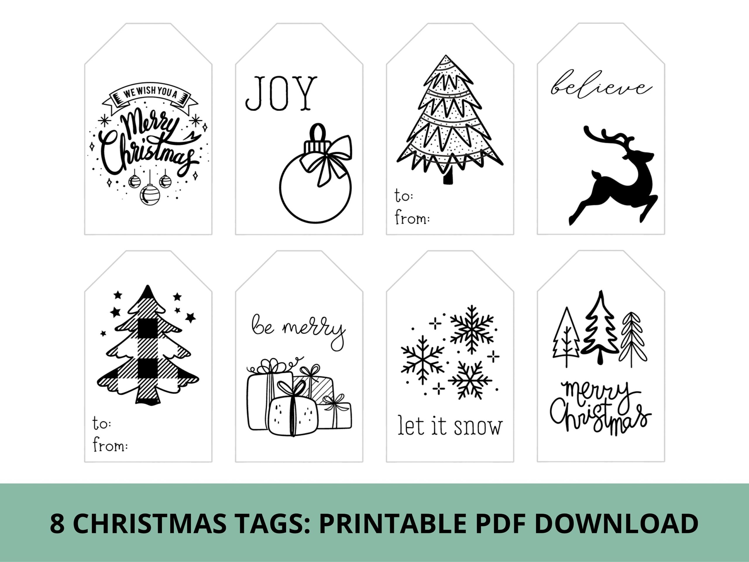 Black And White Christmas Gift Tags Treat Tags Printable PDF Download Etsy