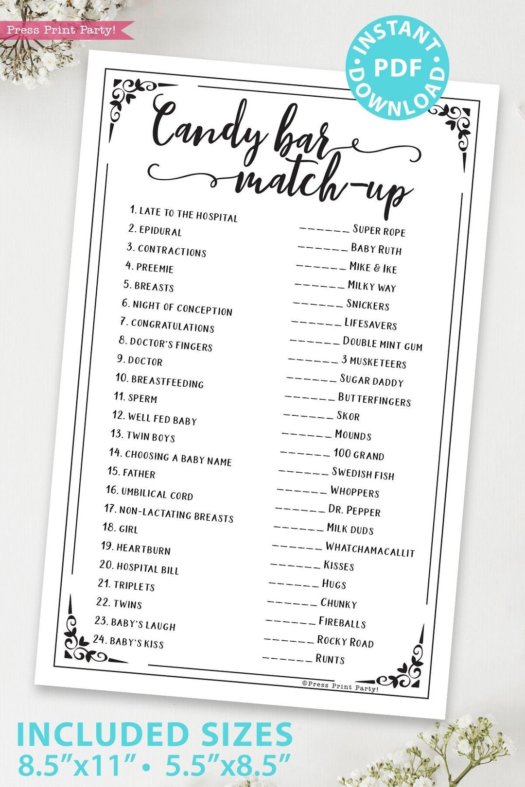 Name That Candy Game Baby Shower Game Answer Key Included Baby Shower Activity Instant Download Etsy
