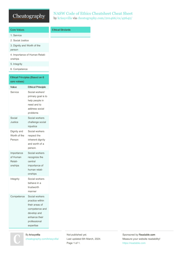 NASW Code Of Ethics Cheatsheet Cheat Sheet By Krissyvilla Download Free From Cheatography Cheatography Cheat Sheets For Every Occasion