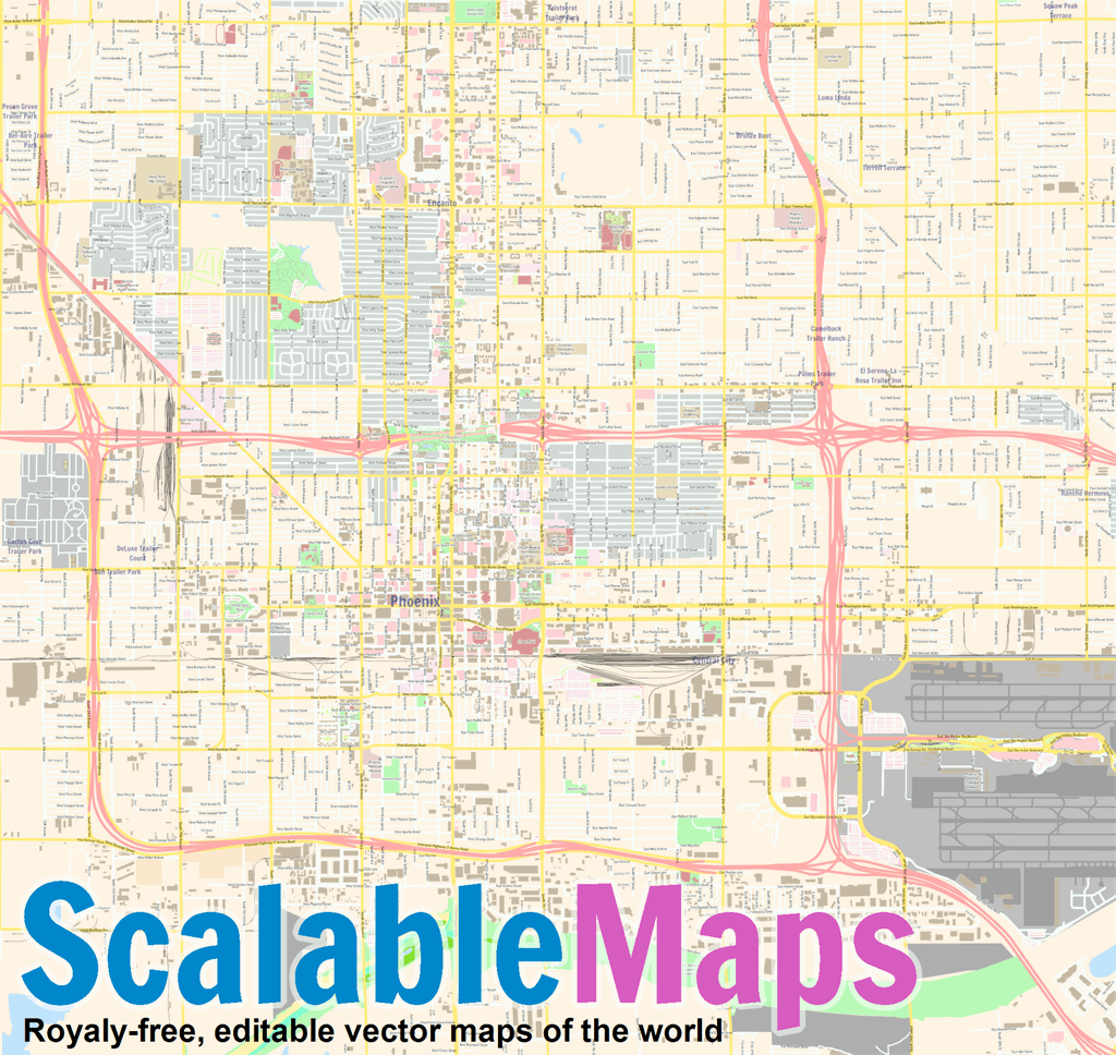 ScalableMaps Vector Map Of Phoenix center colorful City Map Theme