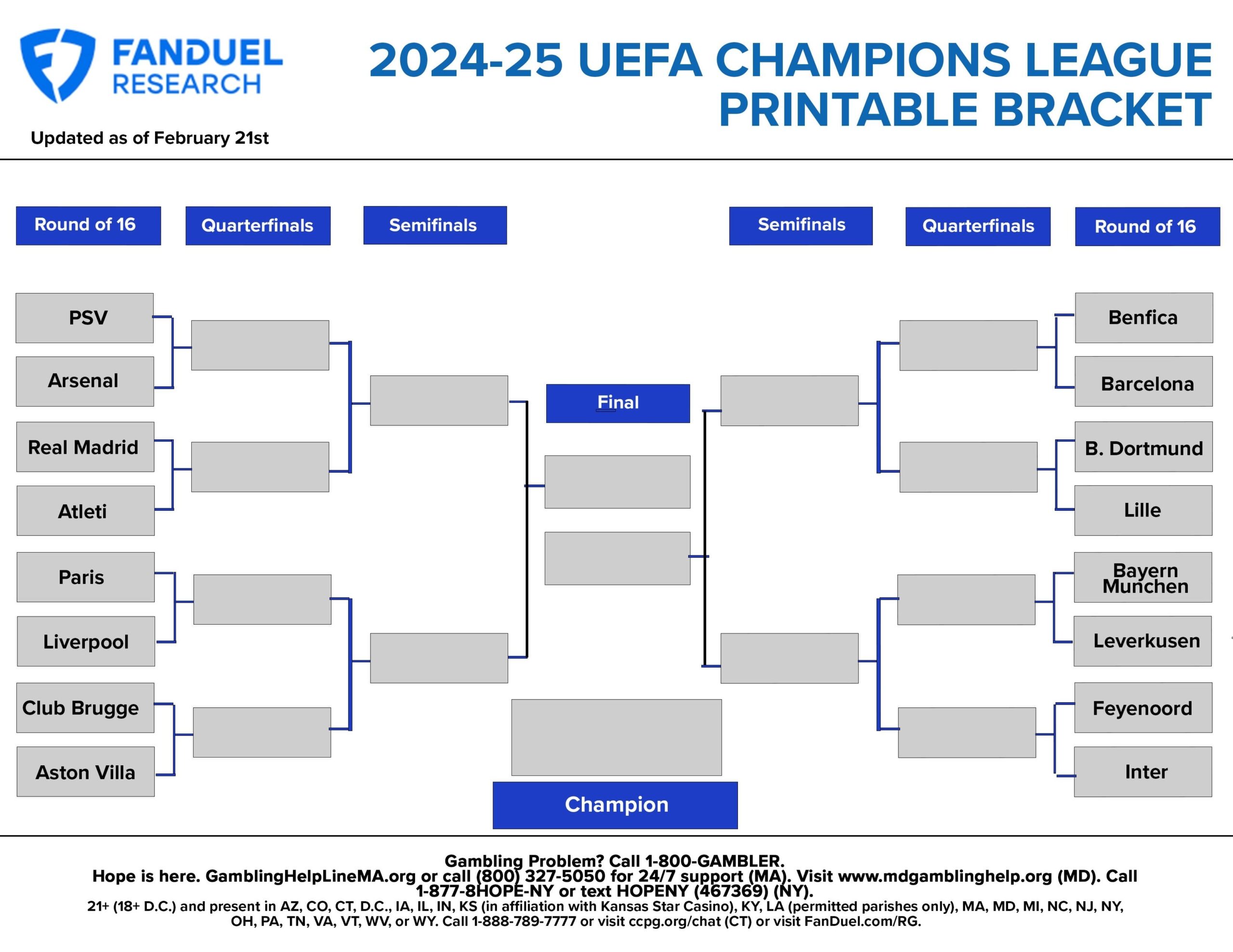 2025 UEFA Champions League Printable Bracket Teams Schedule And Betting Odds FanDuel Research