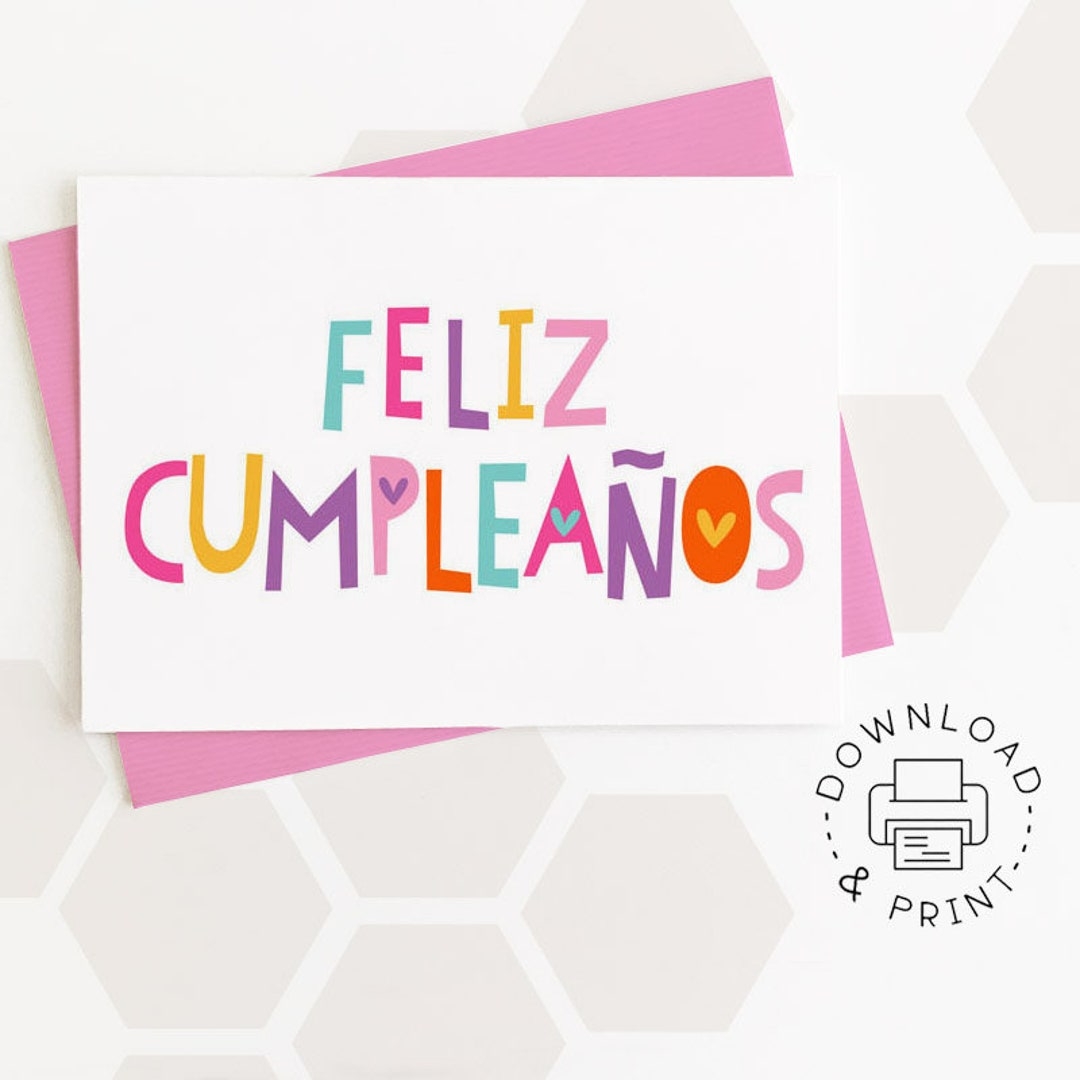Feliz Cumplea os Happy Birthday Printable Card Spanish Card Instant Download PDF Card Template Etsy Hong Kong