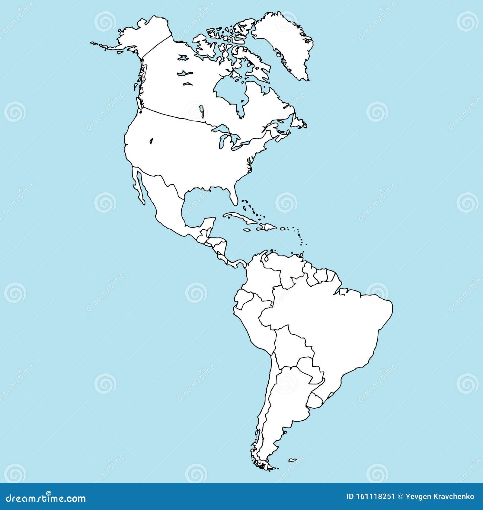 Vector Illustration With Map Of North And South America Continent Black Line Silhouettes White Background Stock Vector Adobe Stock