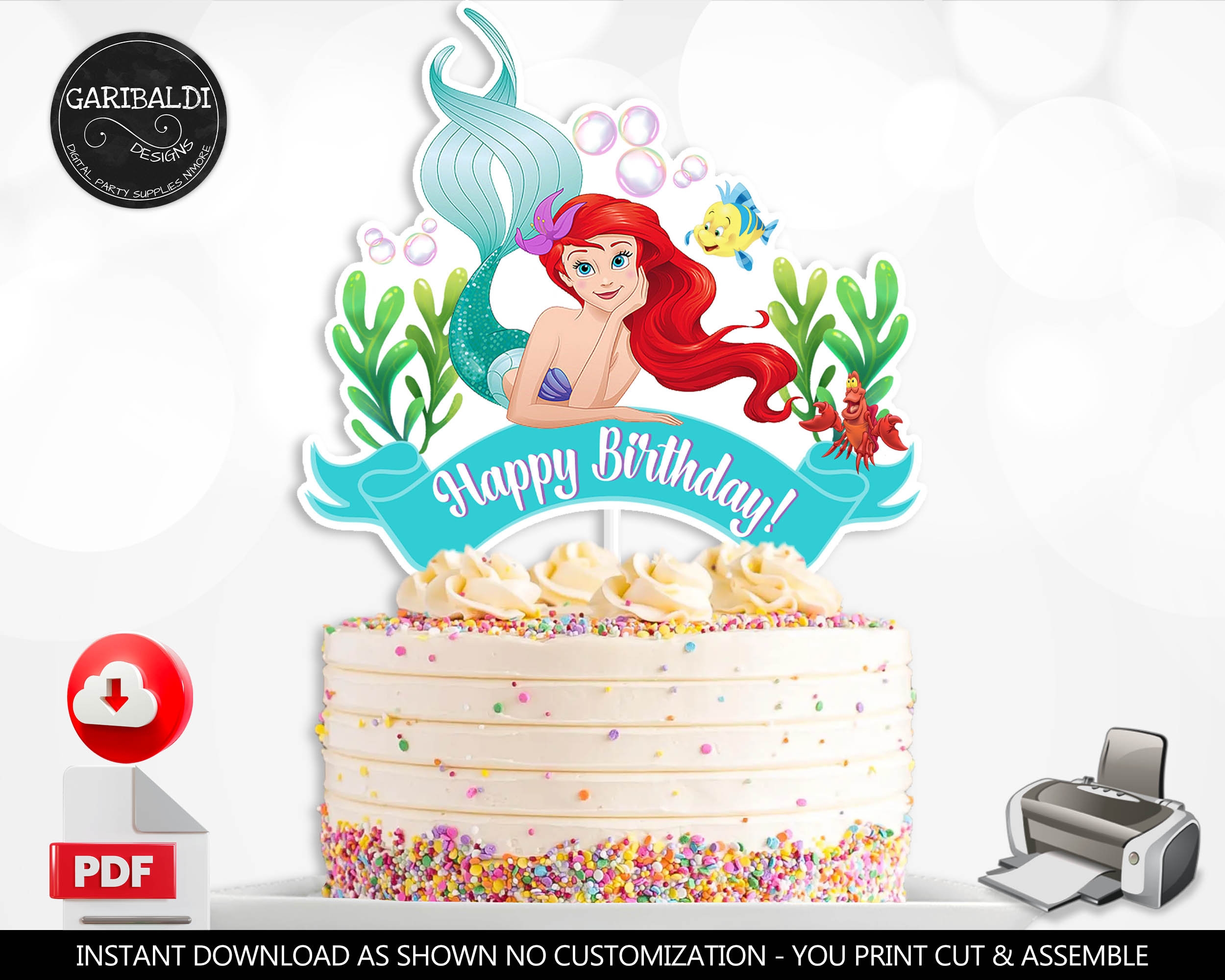 Disney Little Mermaid Ariel Personalized Cake Topper Template Bobotemp