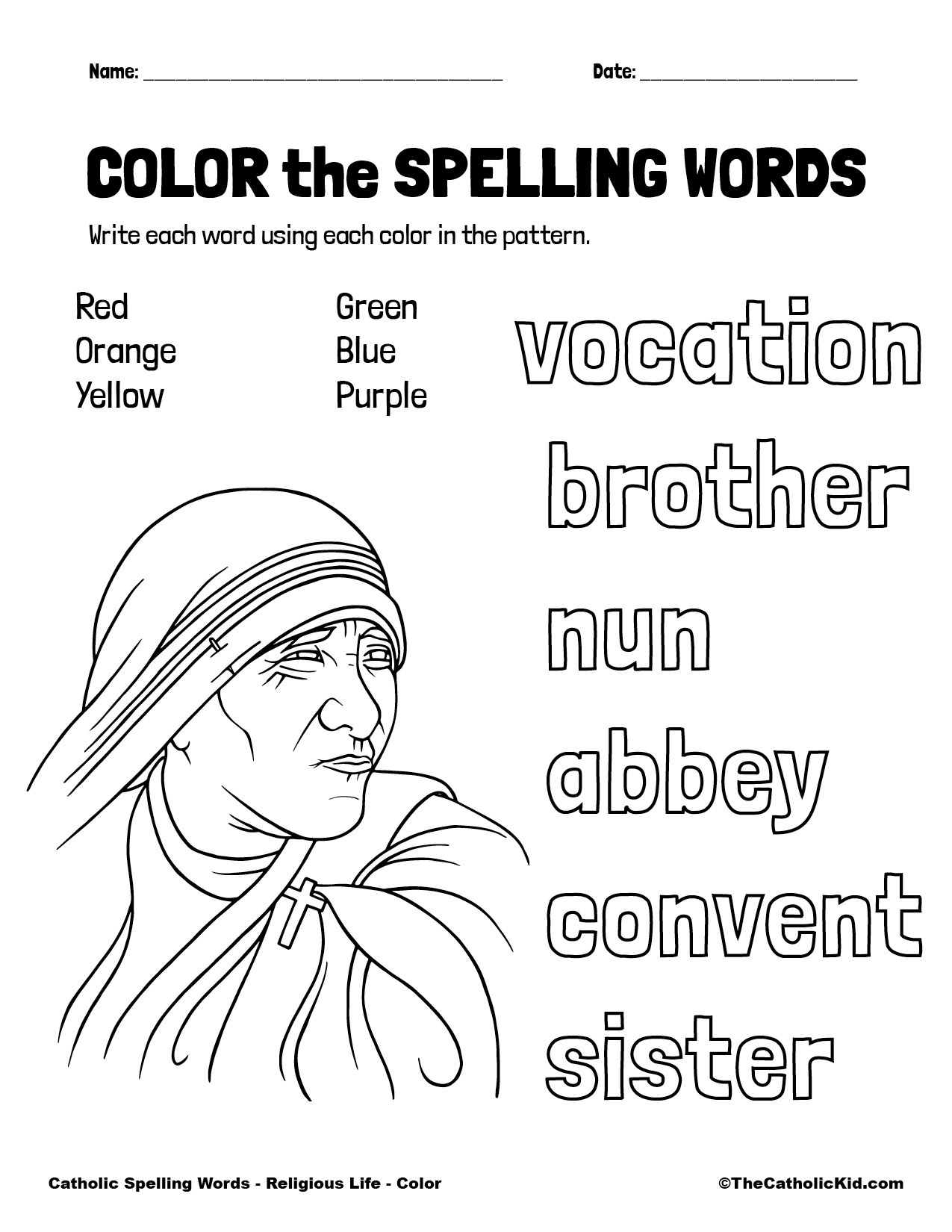 Catholic Spelling Vocabulary Words Religious Life Worksheets TheCatholicKid