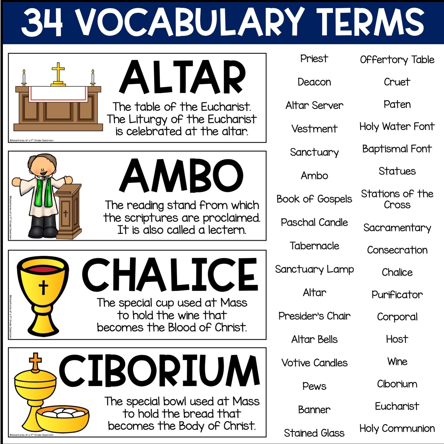 Printable Catholic vocabulary words cover a wide range of topics, including sacraments, saints, prayers, and more. These resources often include definitions, examples, and illustrations to help students grasp the meaning of each term. They can be used as flashcards, worksheets, or study guides.