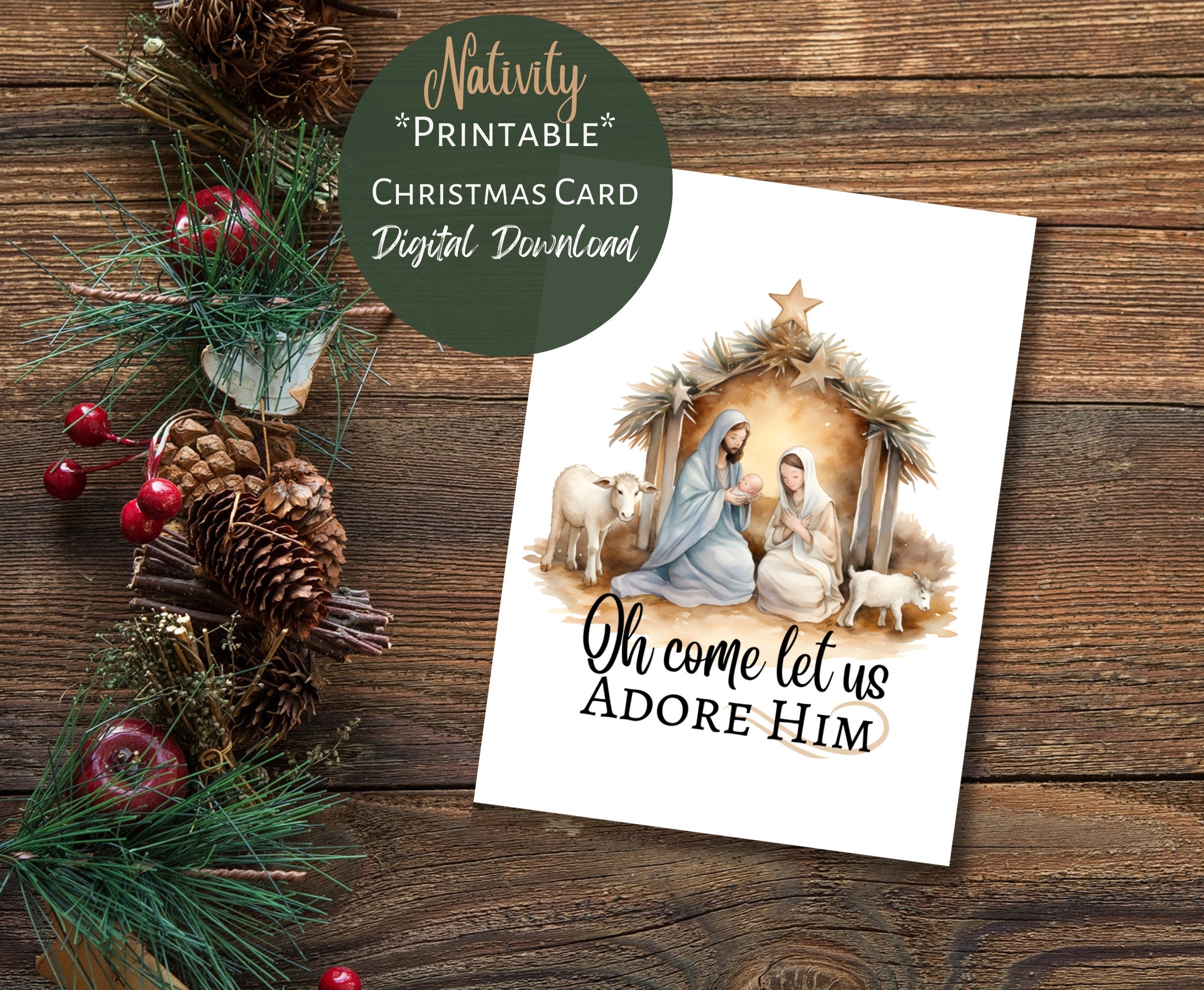 Printable Nativity Christmas Card Digital Instant Download Joseph Mary And Baby Jesus Religious Christian Card Oh Come Let Us Adore Him Etsy