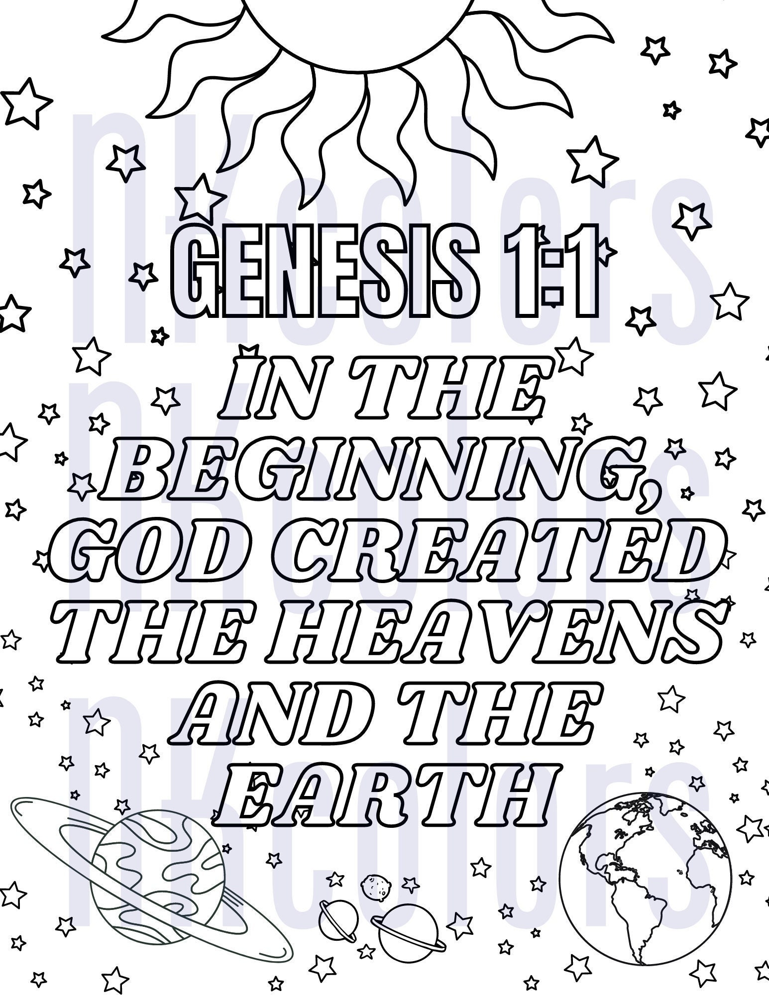 Genesis 1 1 Coloring Page Etsy