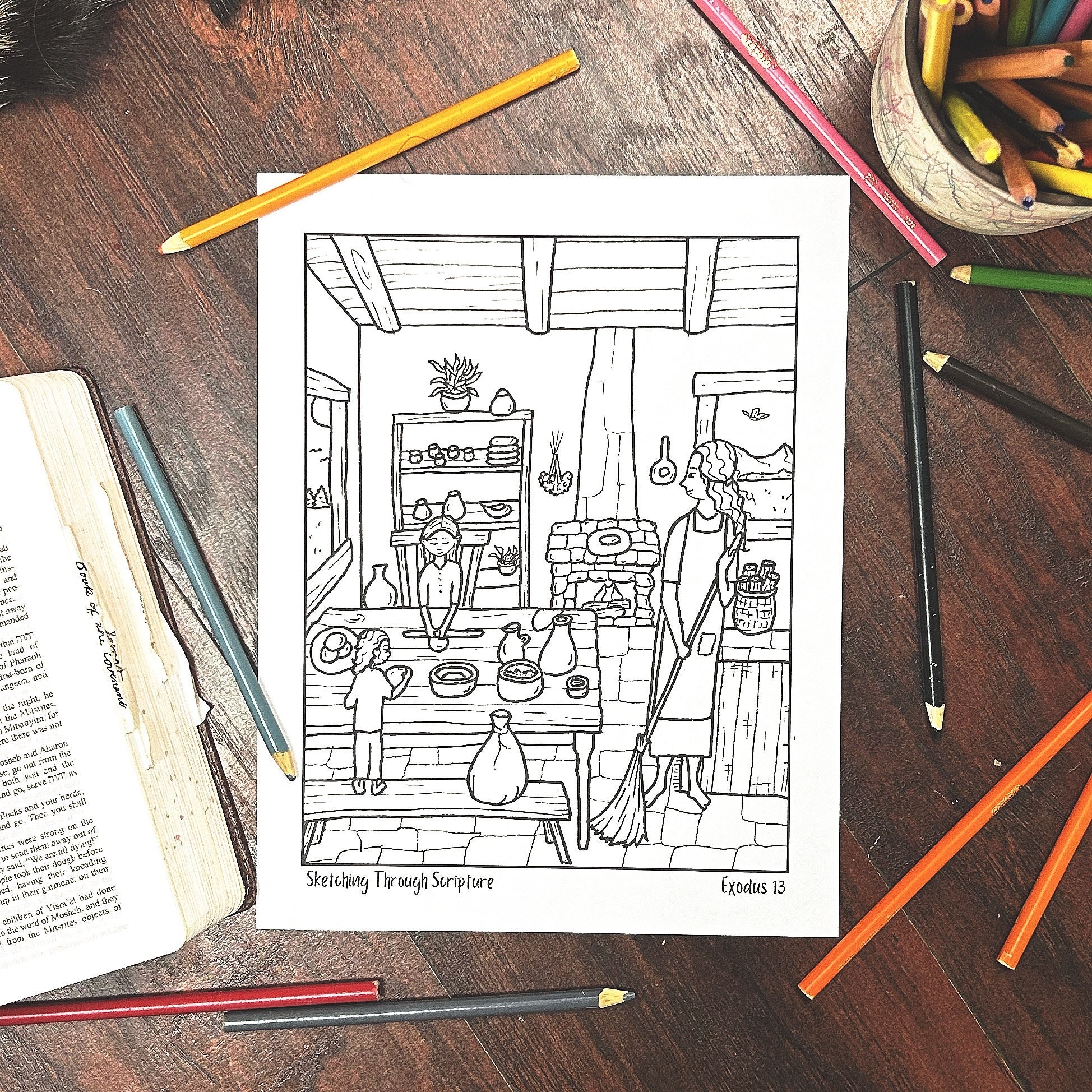 Exodus 13 Unleavened Bread Festival Story Bible Coloring Page PDF For Bible Lesson Bible Activity Feast Day Kids Appointed Time Worksheet Etsy