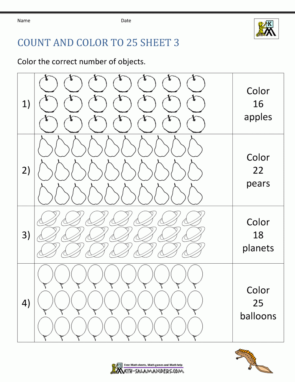 Printable Counting Objects Up To 25 Worksheets