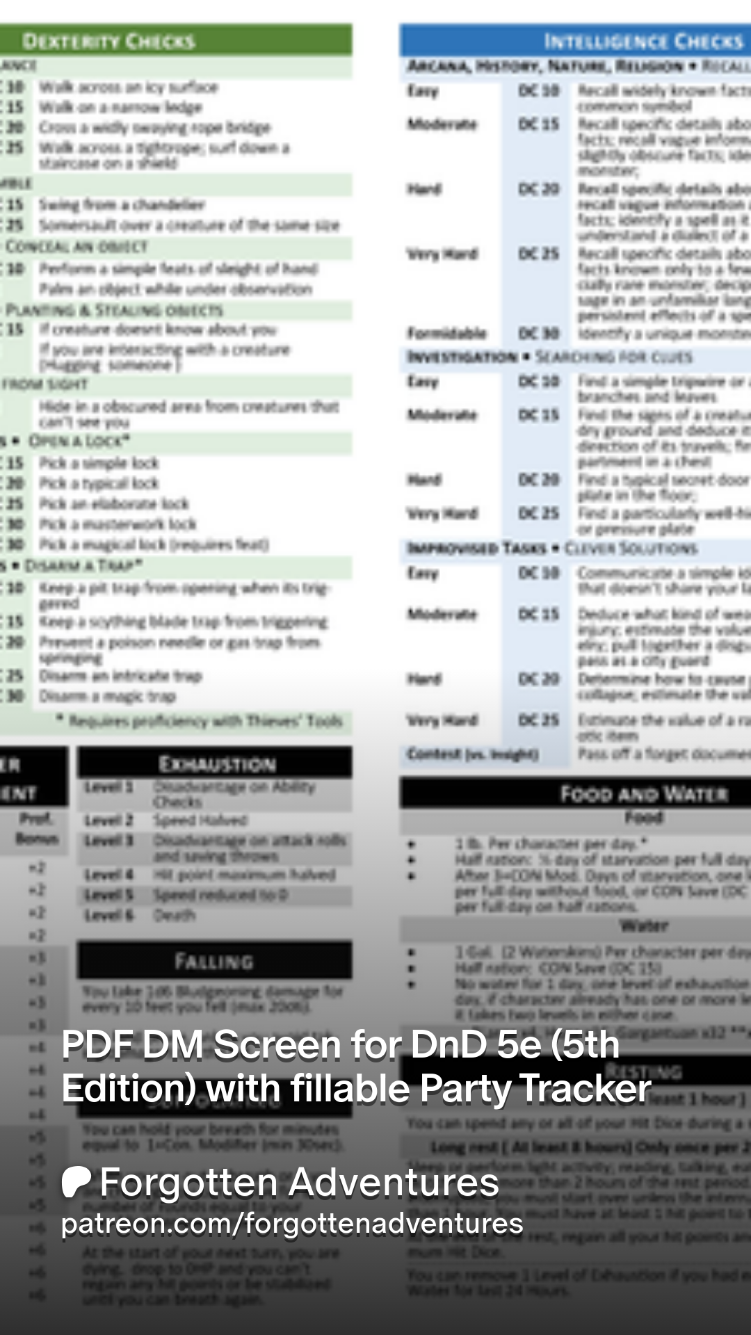 PDF DM Screen For DnD 5e 5th Edition With Fillable Party Tracker Patreon